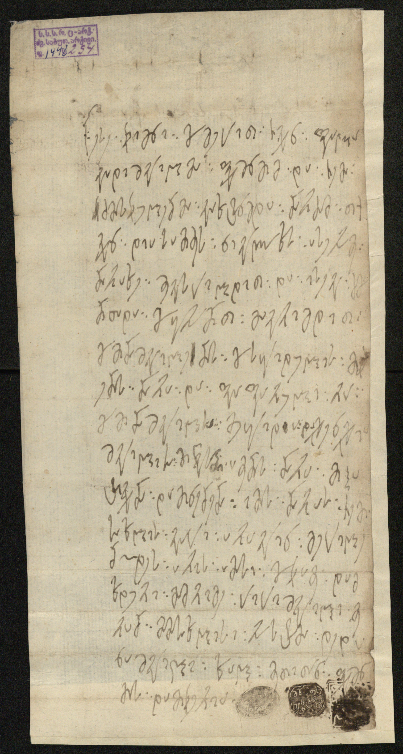 ქაღალდი, დაწერილი ყავისფერი მელნით.