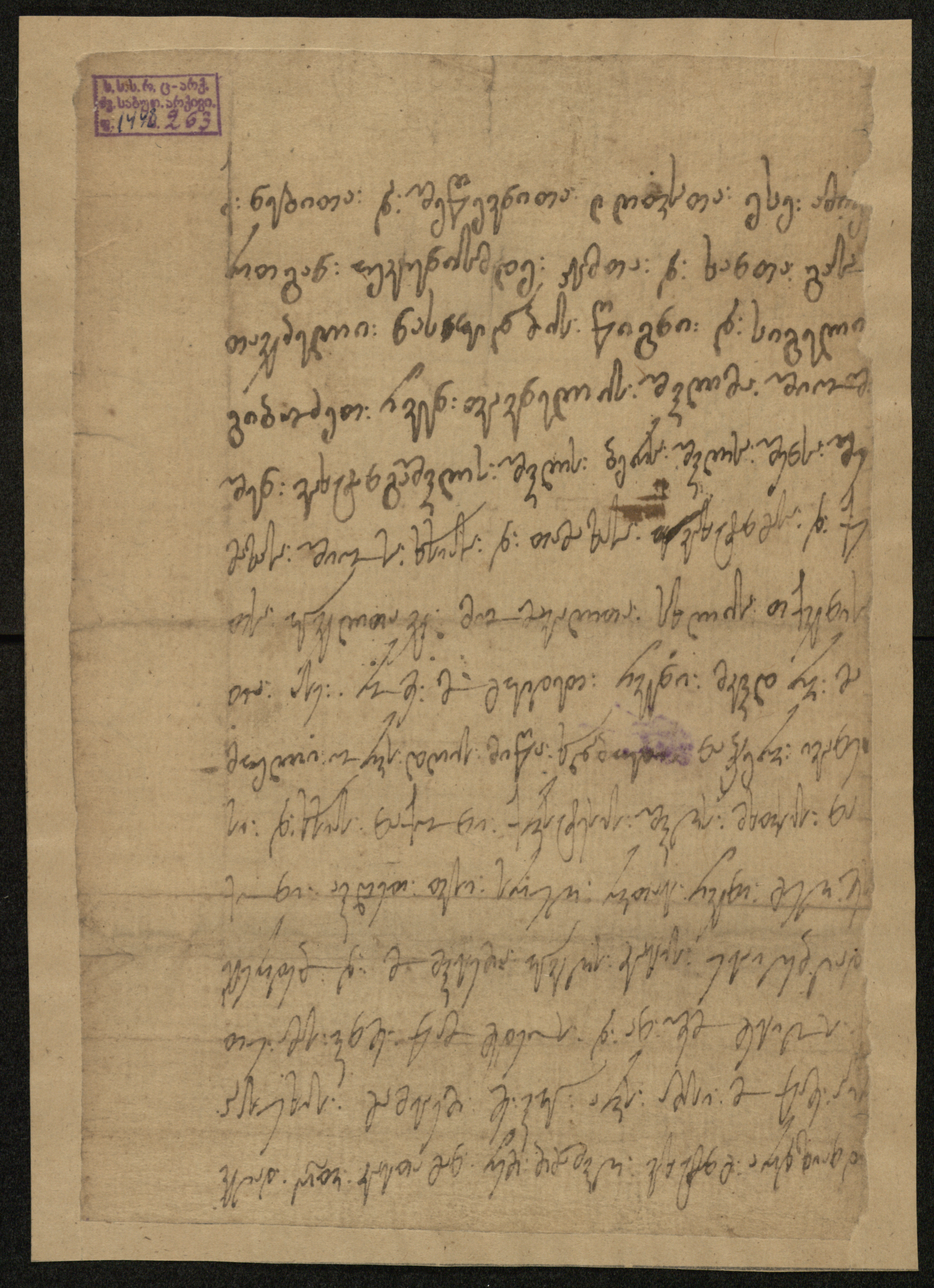 ჭვირნიშნიანი ქაღალდი, დაწერილი შავი მელნით.