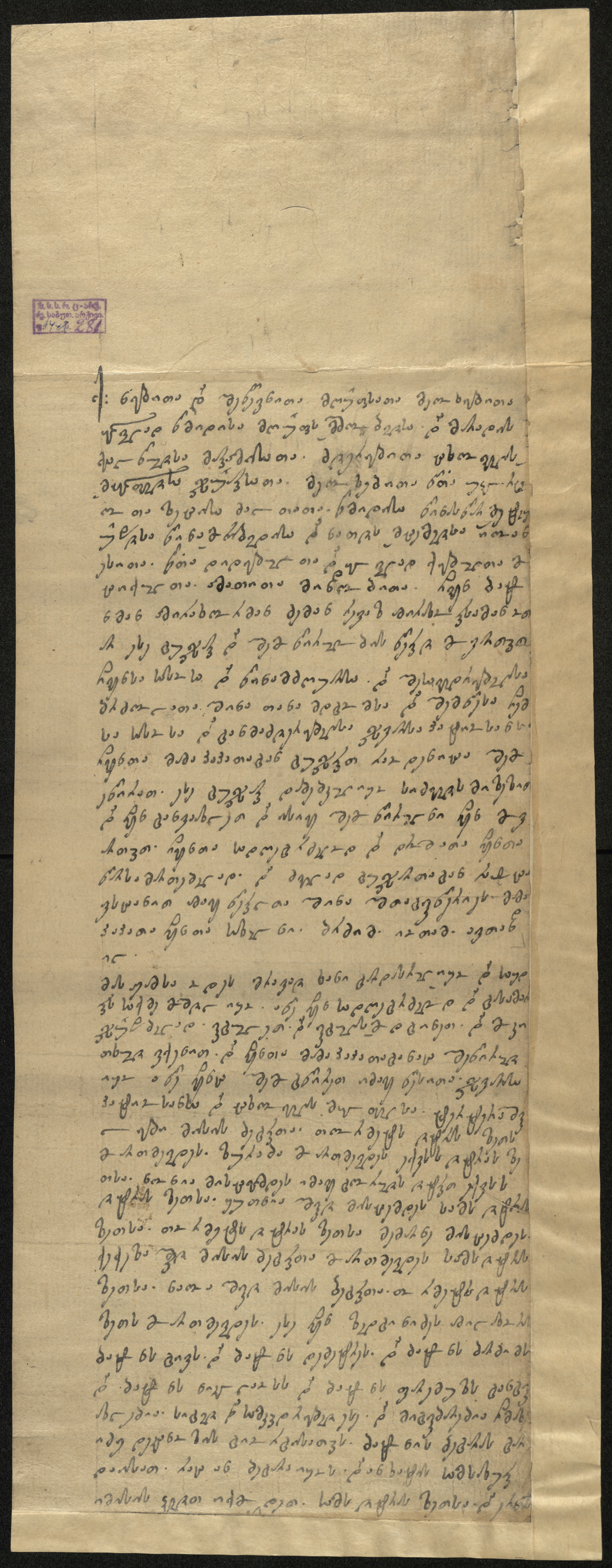 ქაღალდი, დაწერილი შავი მელნით. რესტავრირებული.