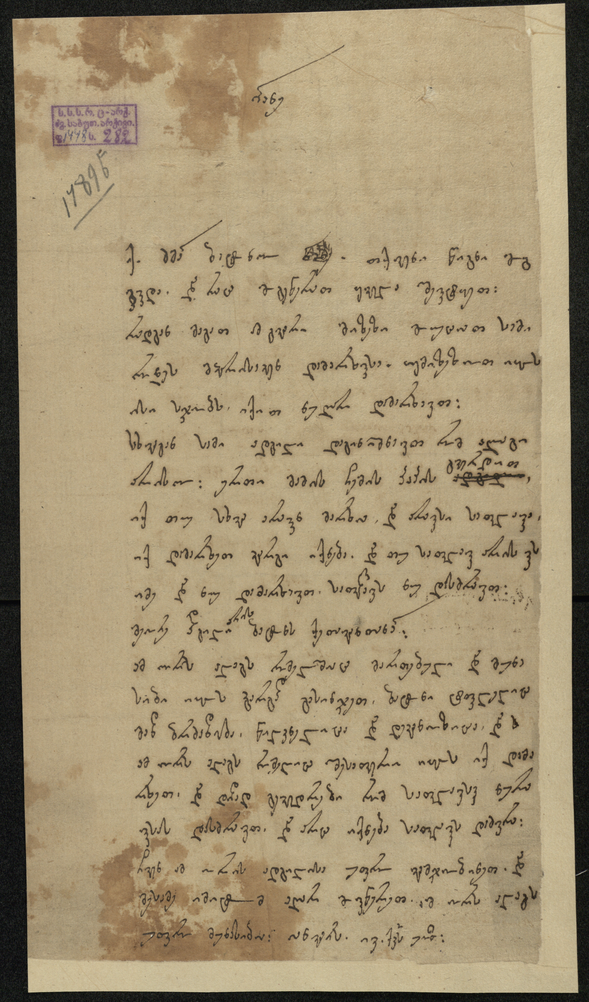 ქაღალდი ჭვირნიშნით, დაწერილი ყავისფერი მელნით.