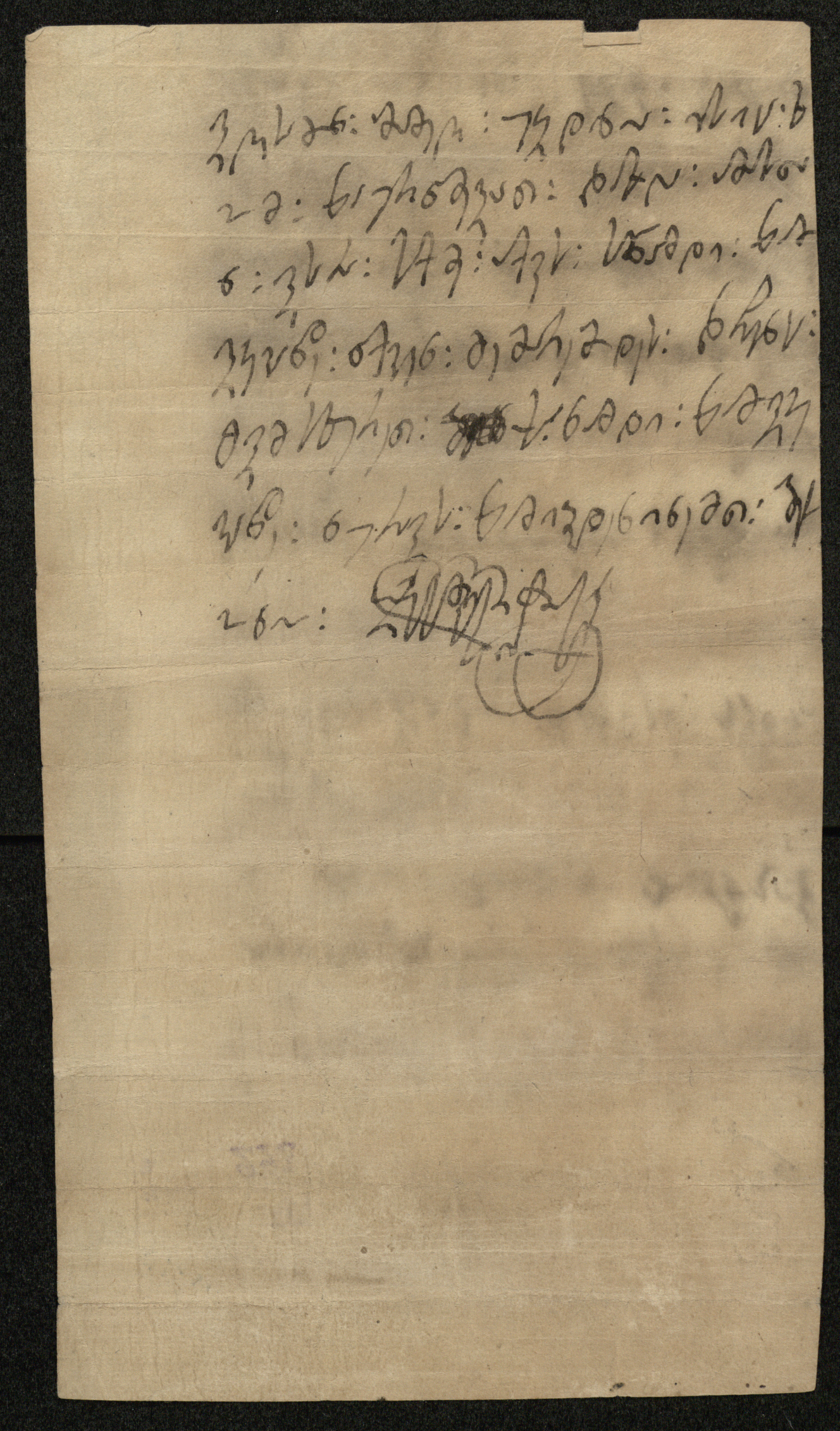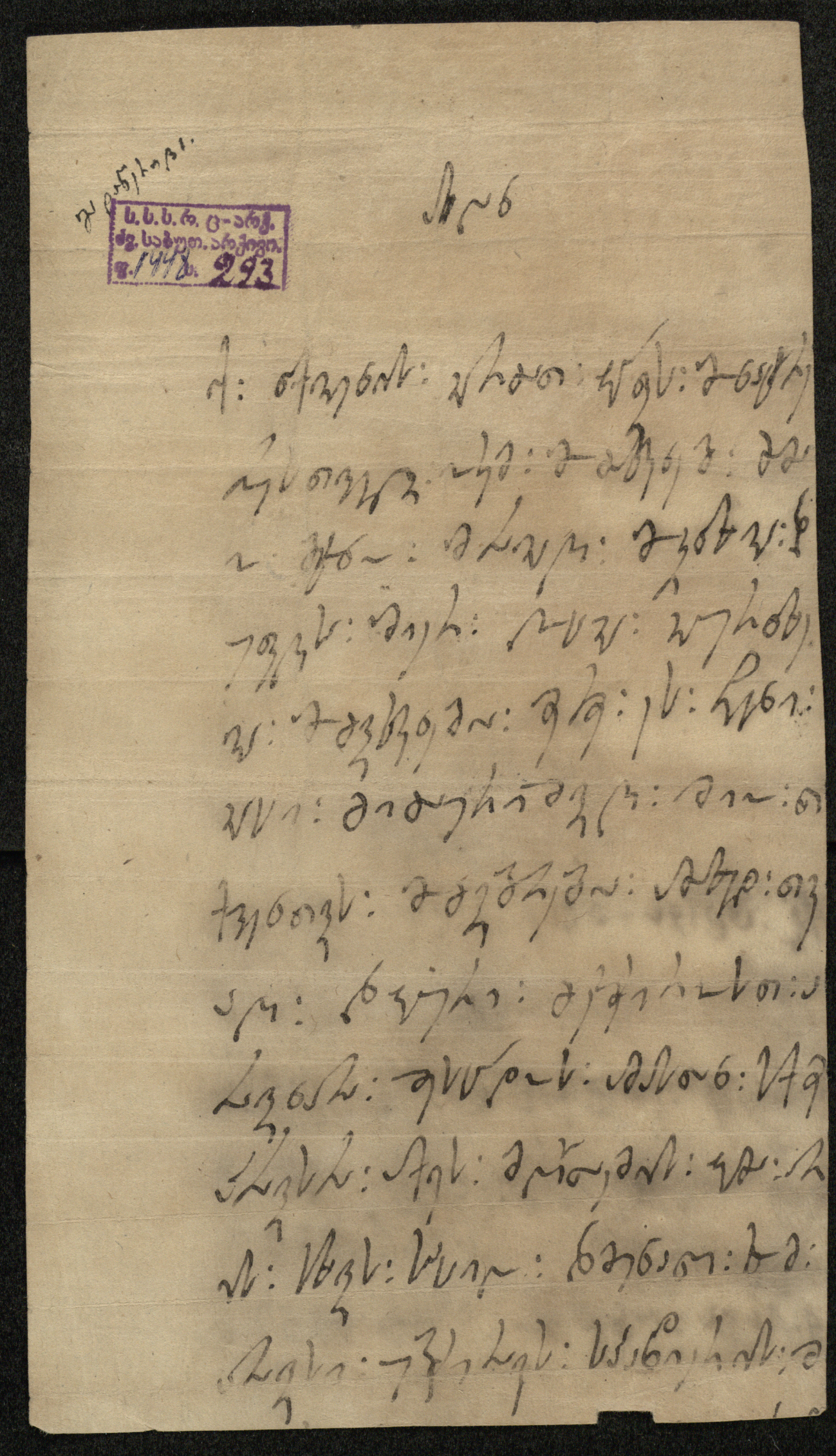 ქაღალდი, დაწერილი შავი მელნით.