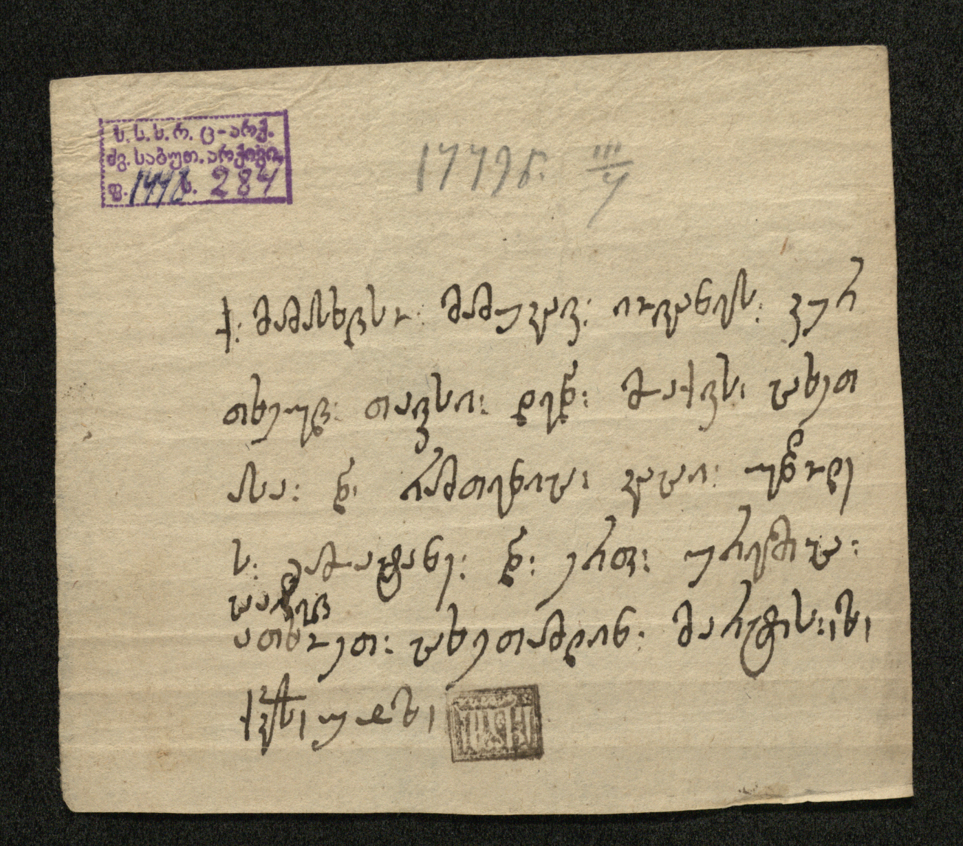 ქაღალდი, დაწერილი ყავისფერი მელნით.