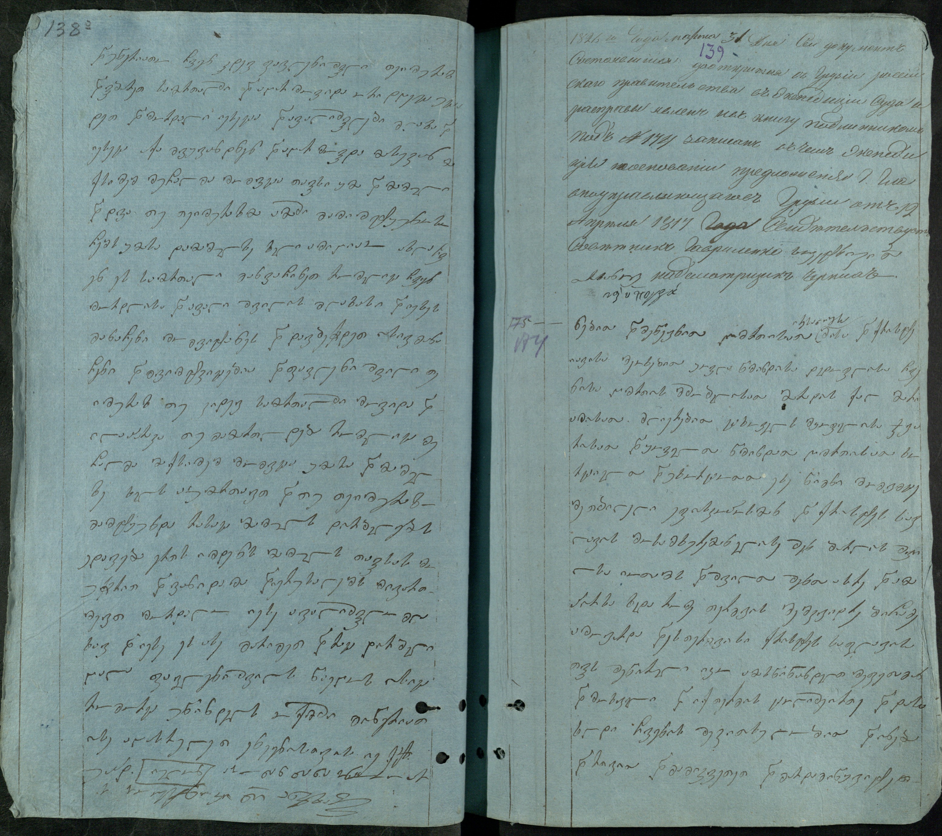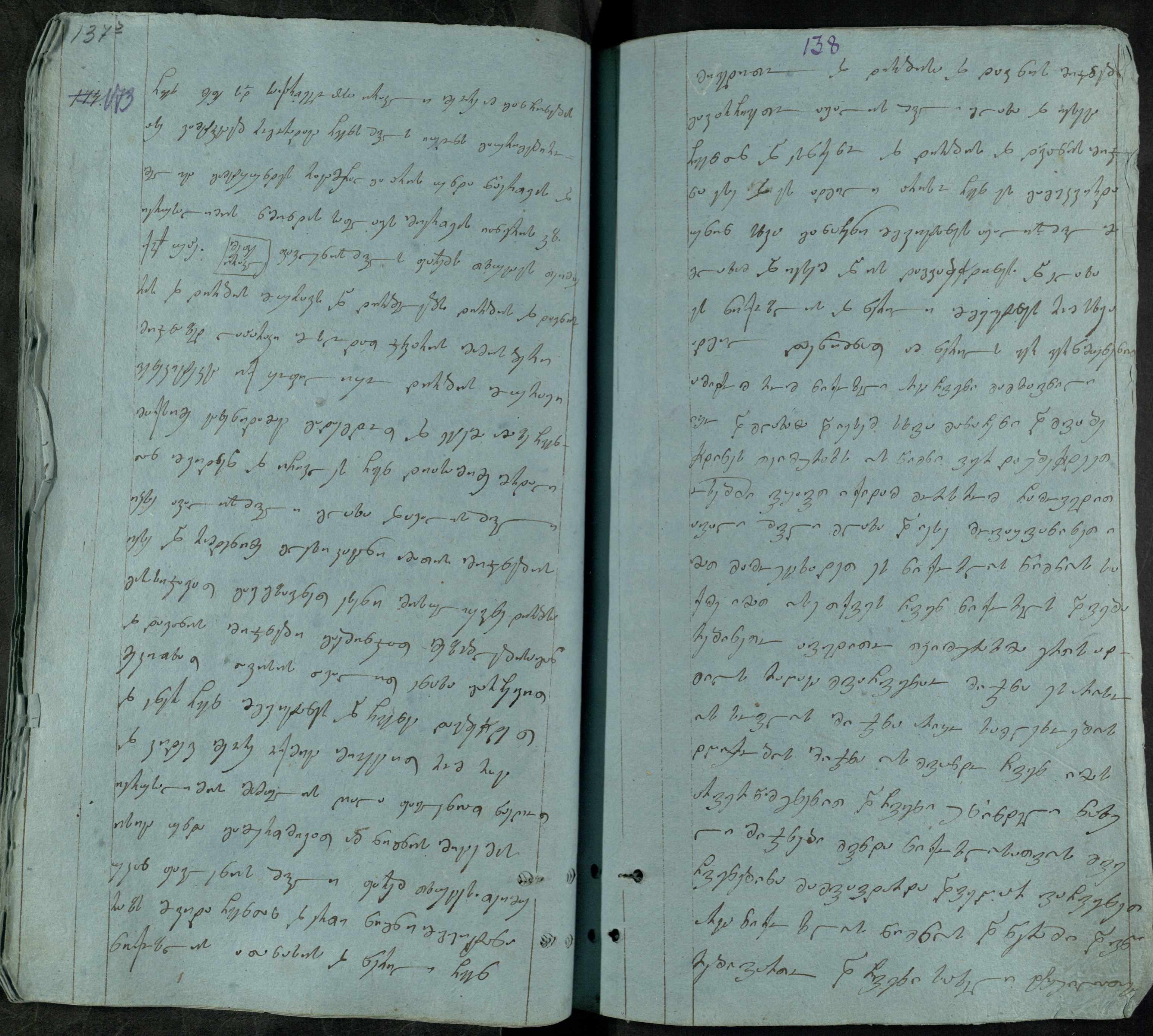 ქაღალდი ცისფერი დაწერილი შავი მელნით