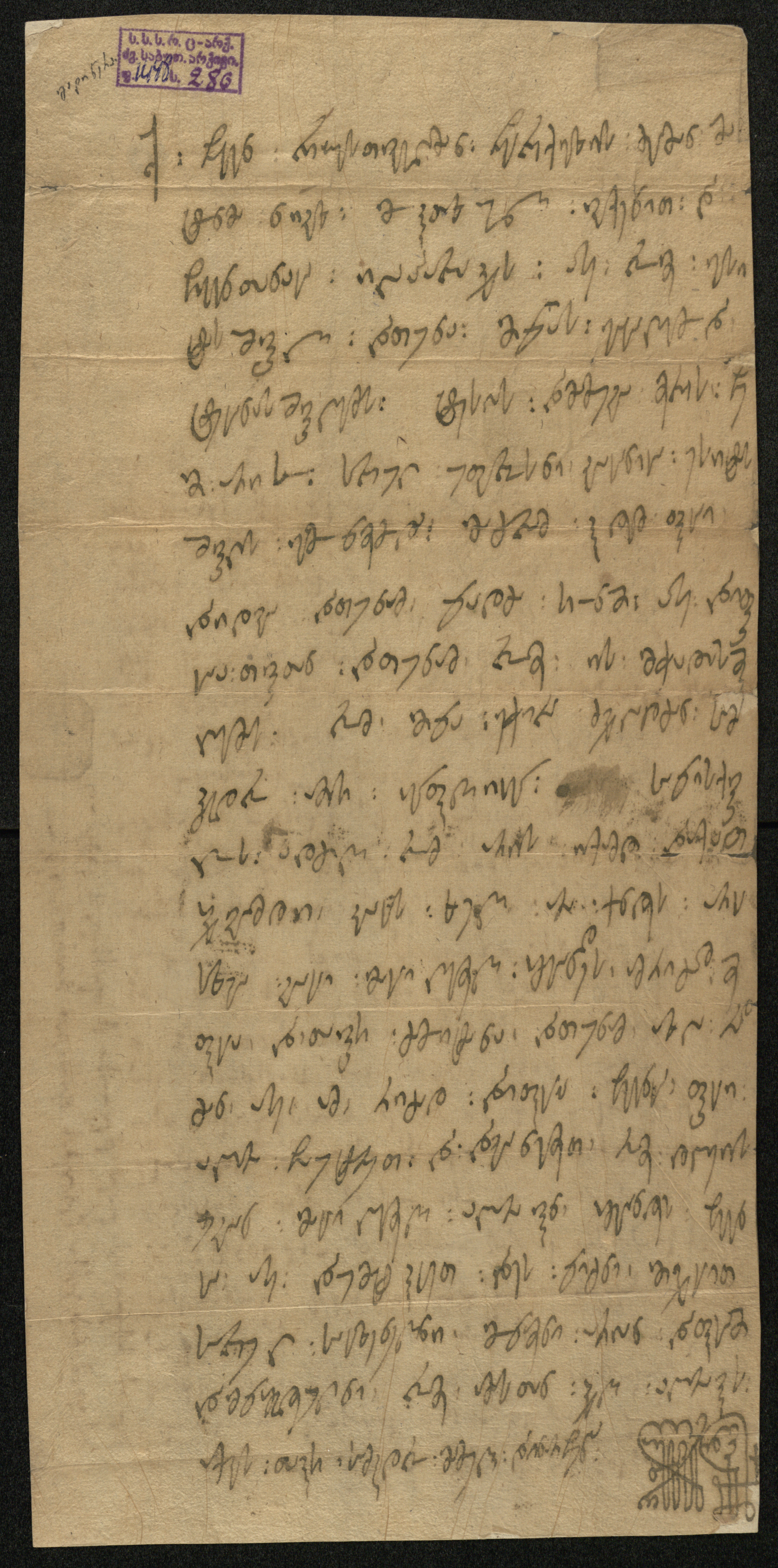 ქაღალდი, დაწერილი შავი მელნით.