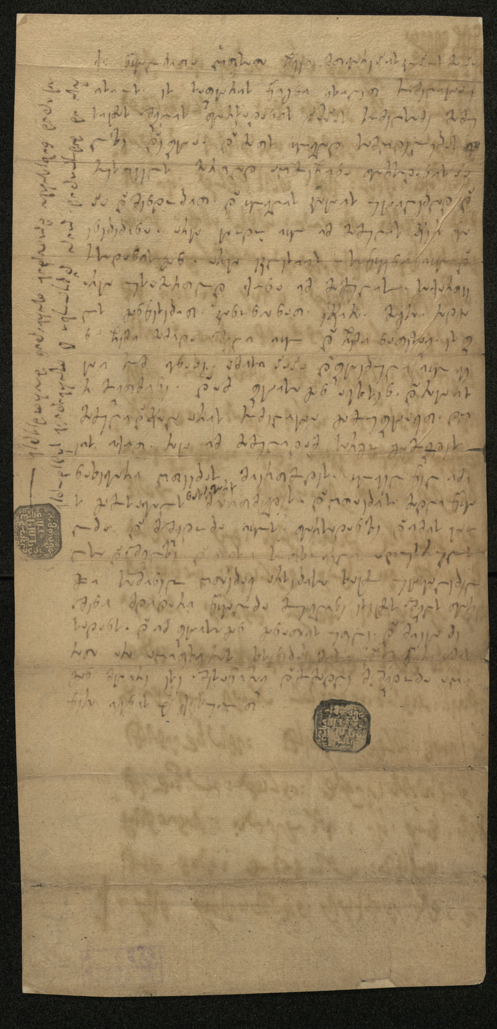 1. ახლავს რუსთველი ნიკოლოზის ხელრთვა და ორი ბეჭედი.