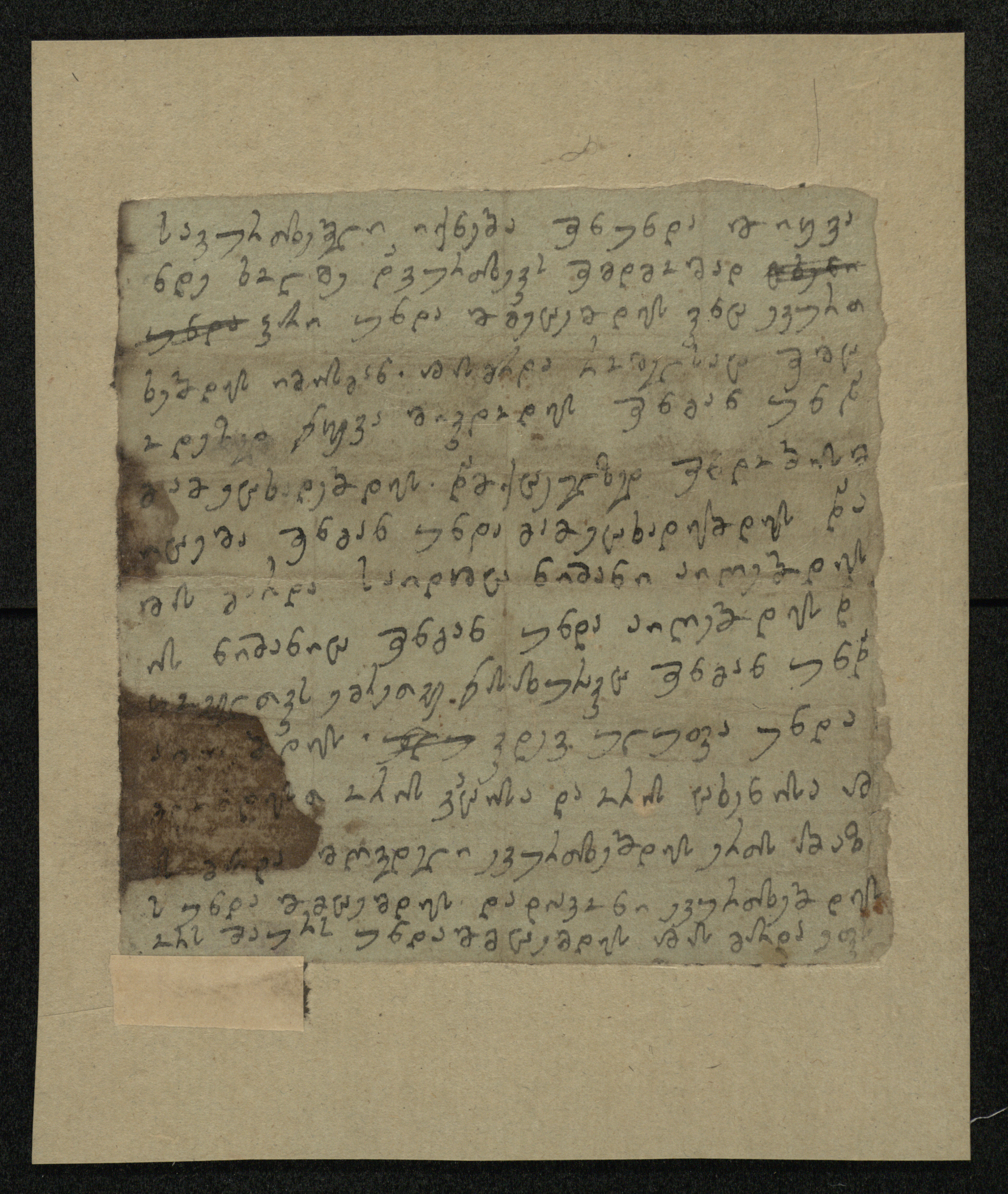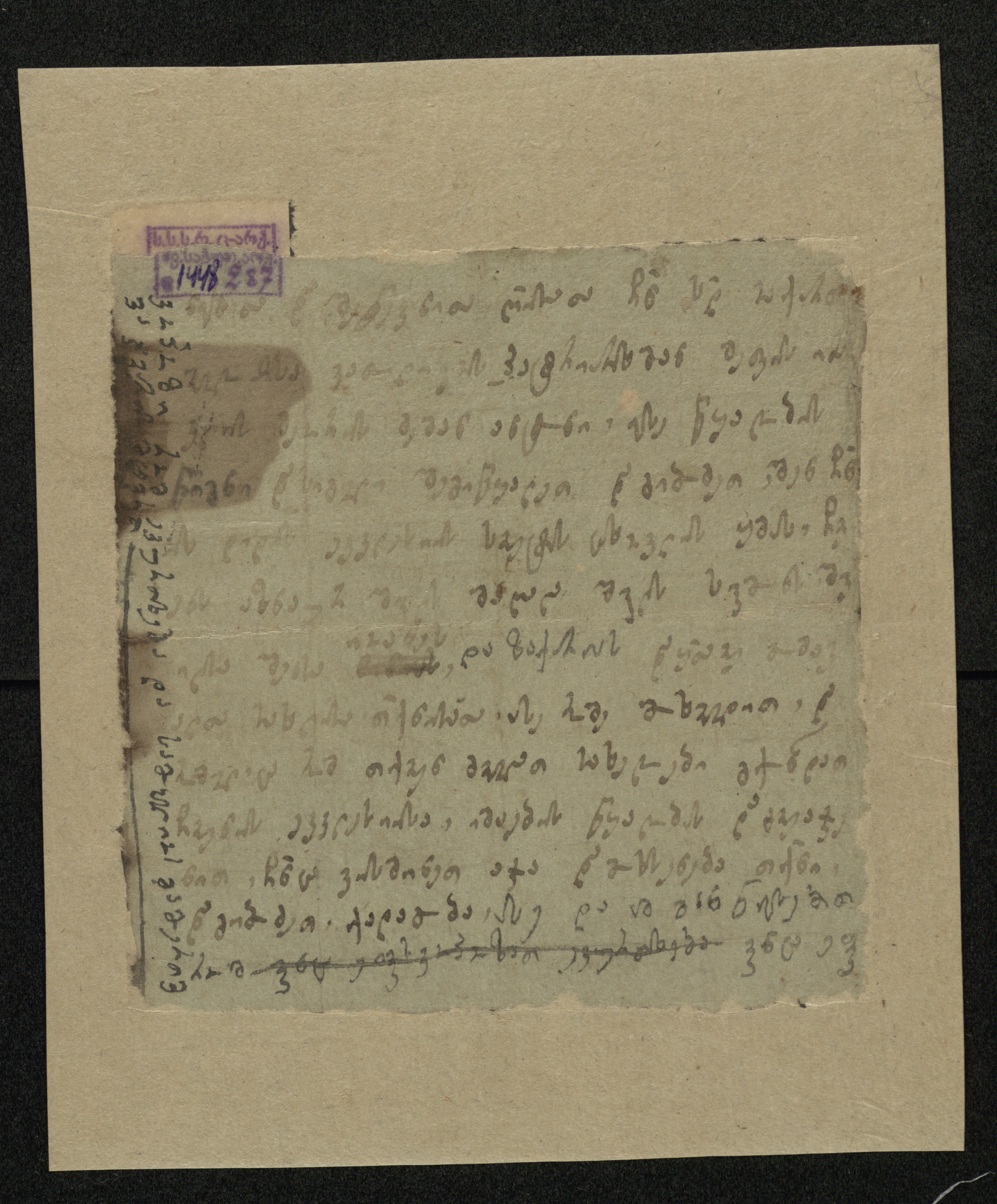 ქაღალდი ცისფერი, დაწერილი შავი მელნით.
