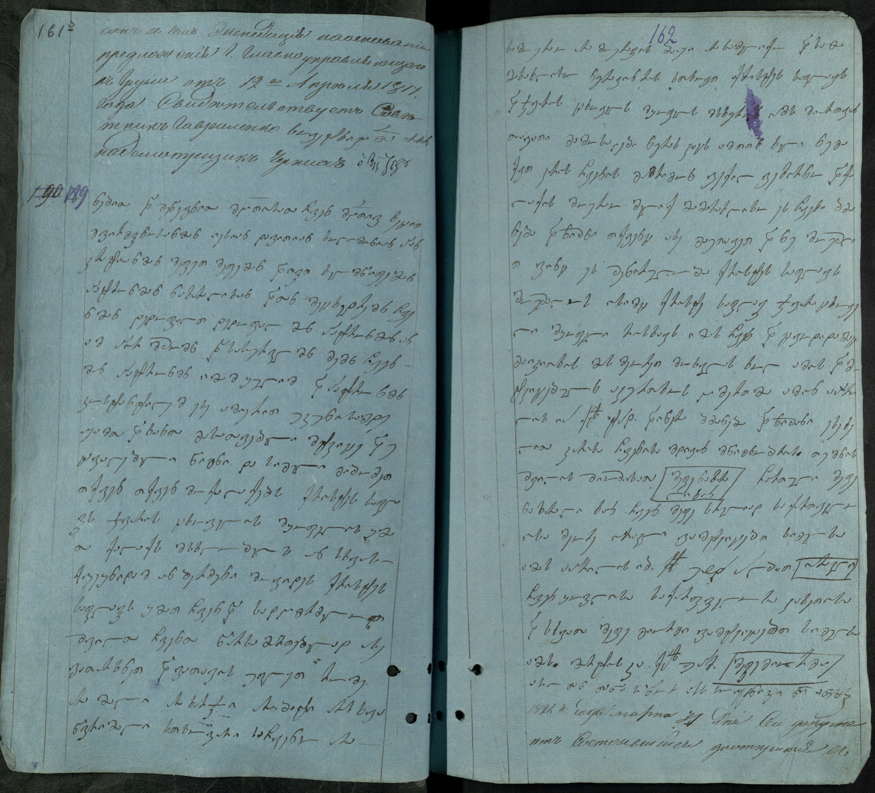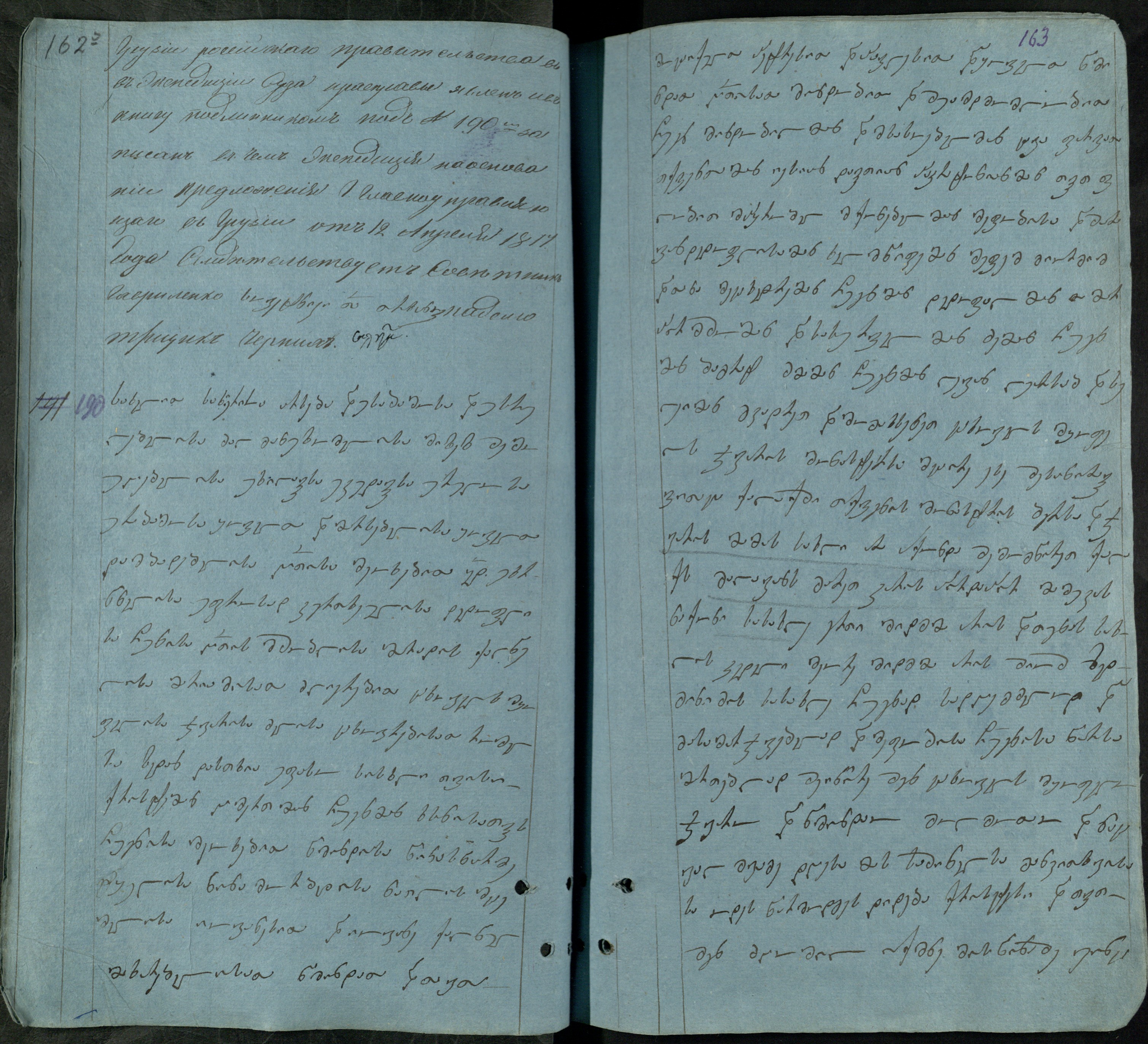 ქაღალდი ცისფერი, დაწერილი შავი მელნით.