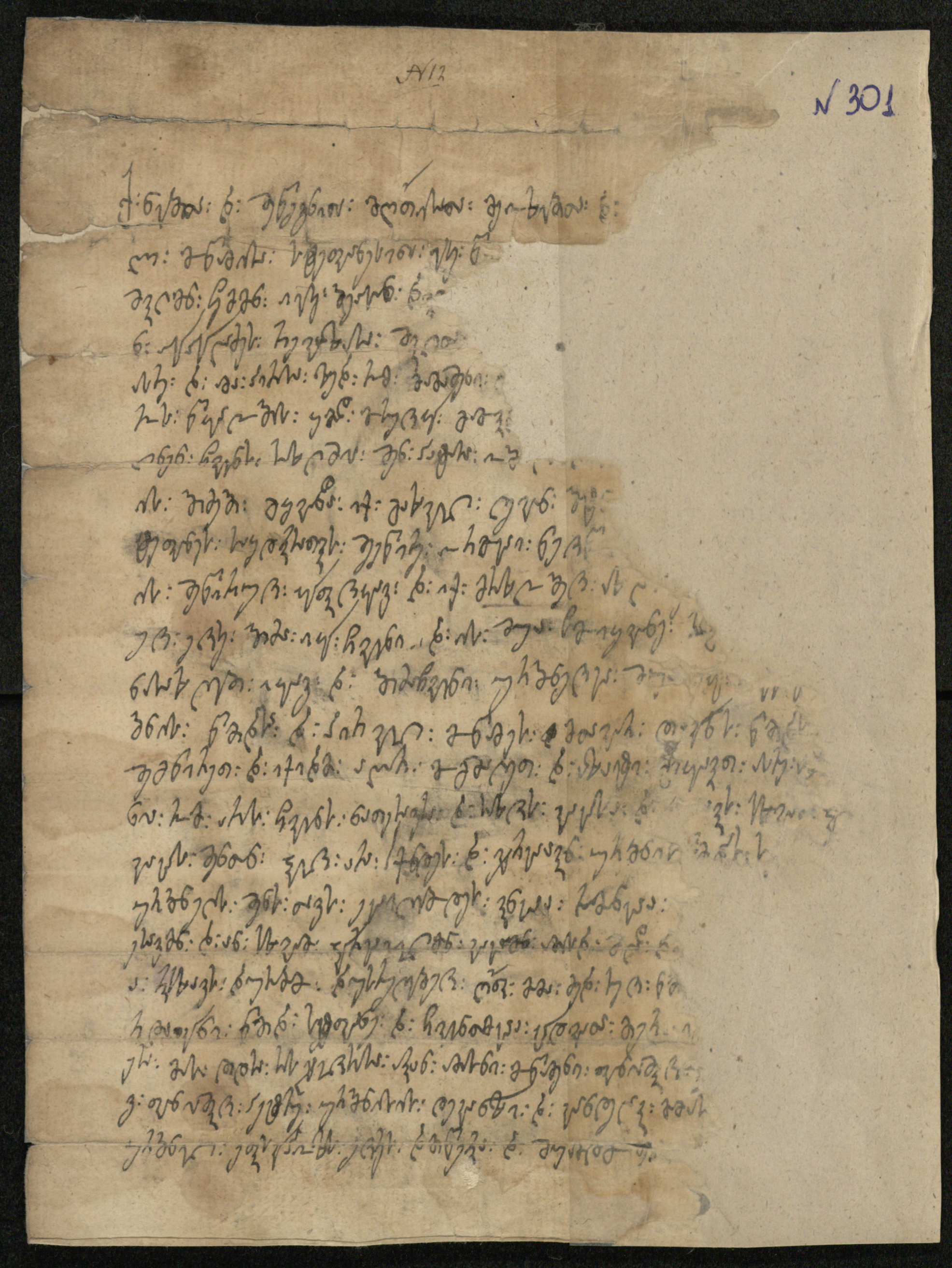 ქაღალდი ღია ყავისფერი, დაწერილი შავი მელნით.
