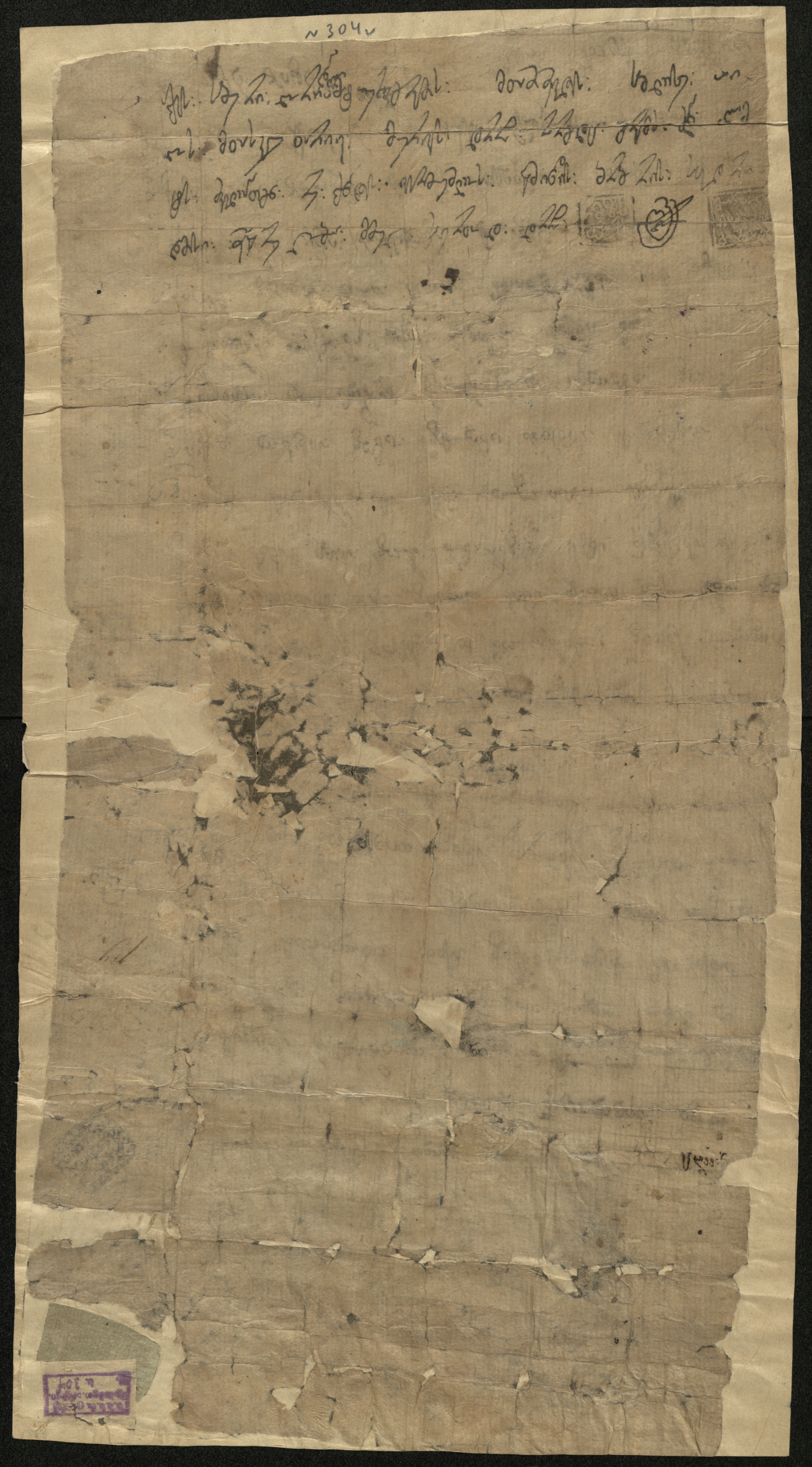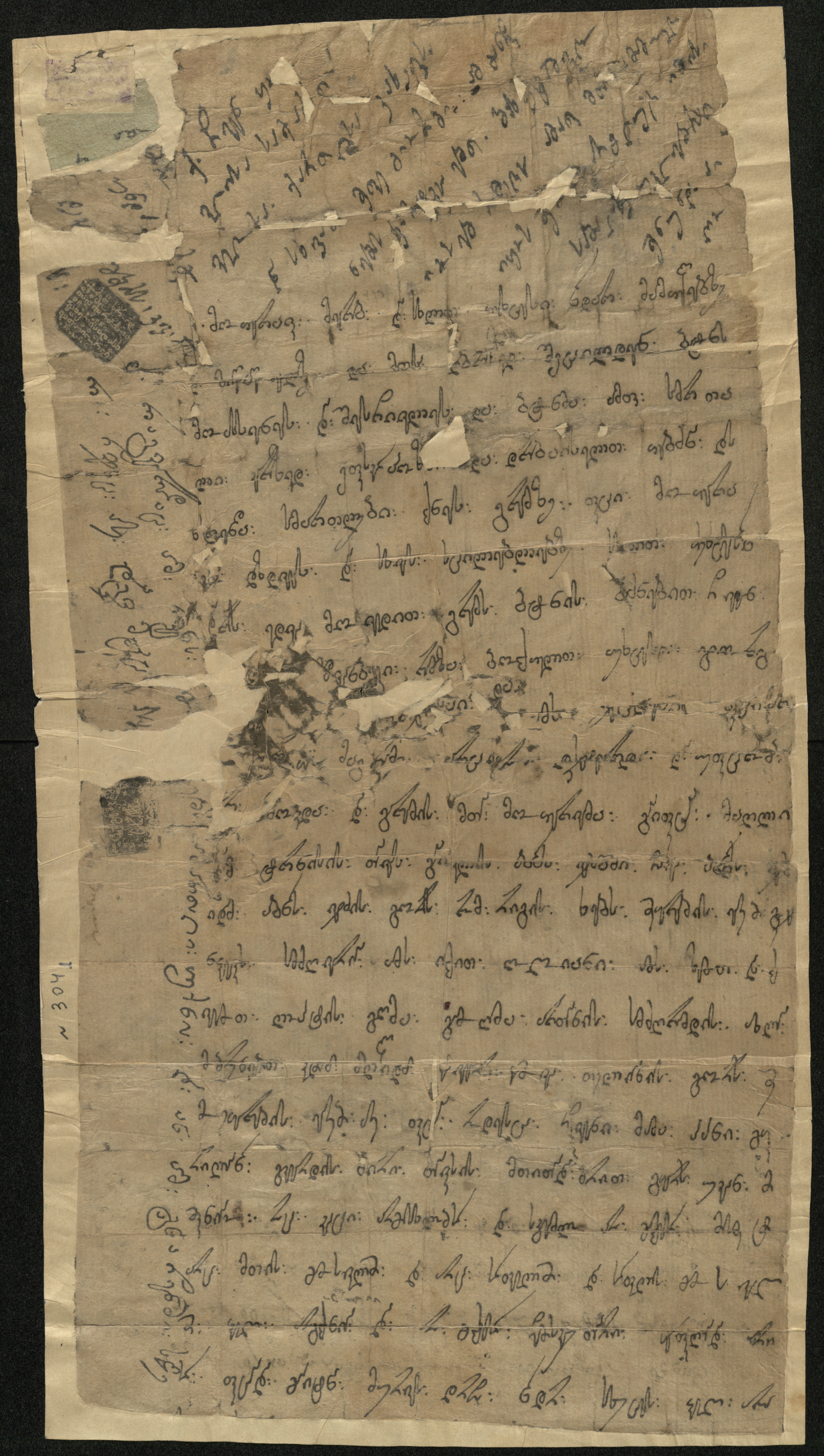 ქაღალდი ყავისფერი, დაწერილი შავი მელნით.