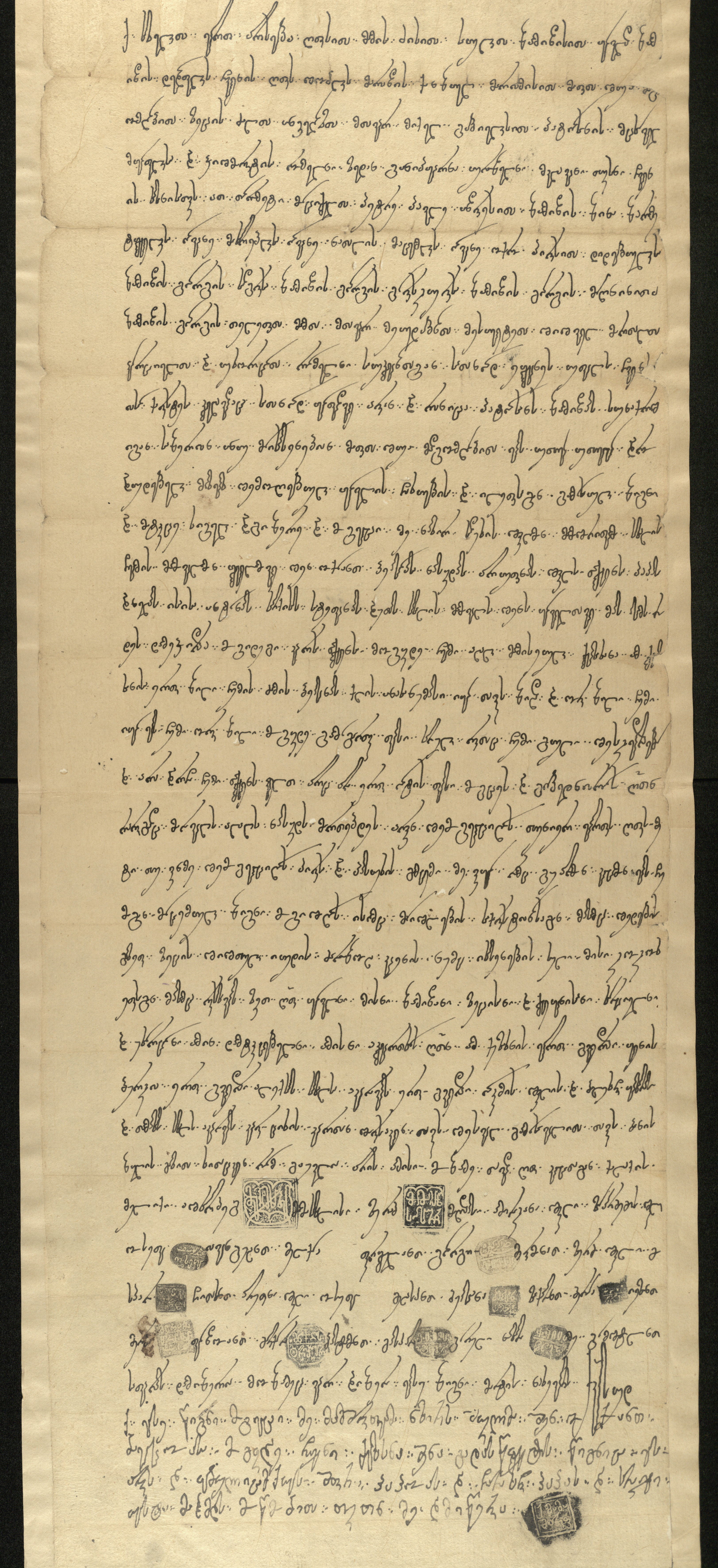 4. მინაწერები: ა) “ეს სიგელი მამაშარიფ მუზახანის მიცემულია”; ბ) “ციხის გარეთ რომ ალაგია ის ქურახანა ადგილი იმის სიგელები ყოფილა კარის გარედამ რომ ახლა გვერგო ჩვენ ჩაიწერა ზ”.