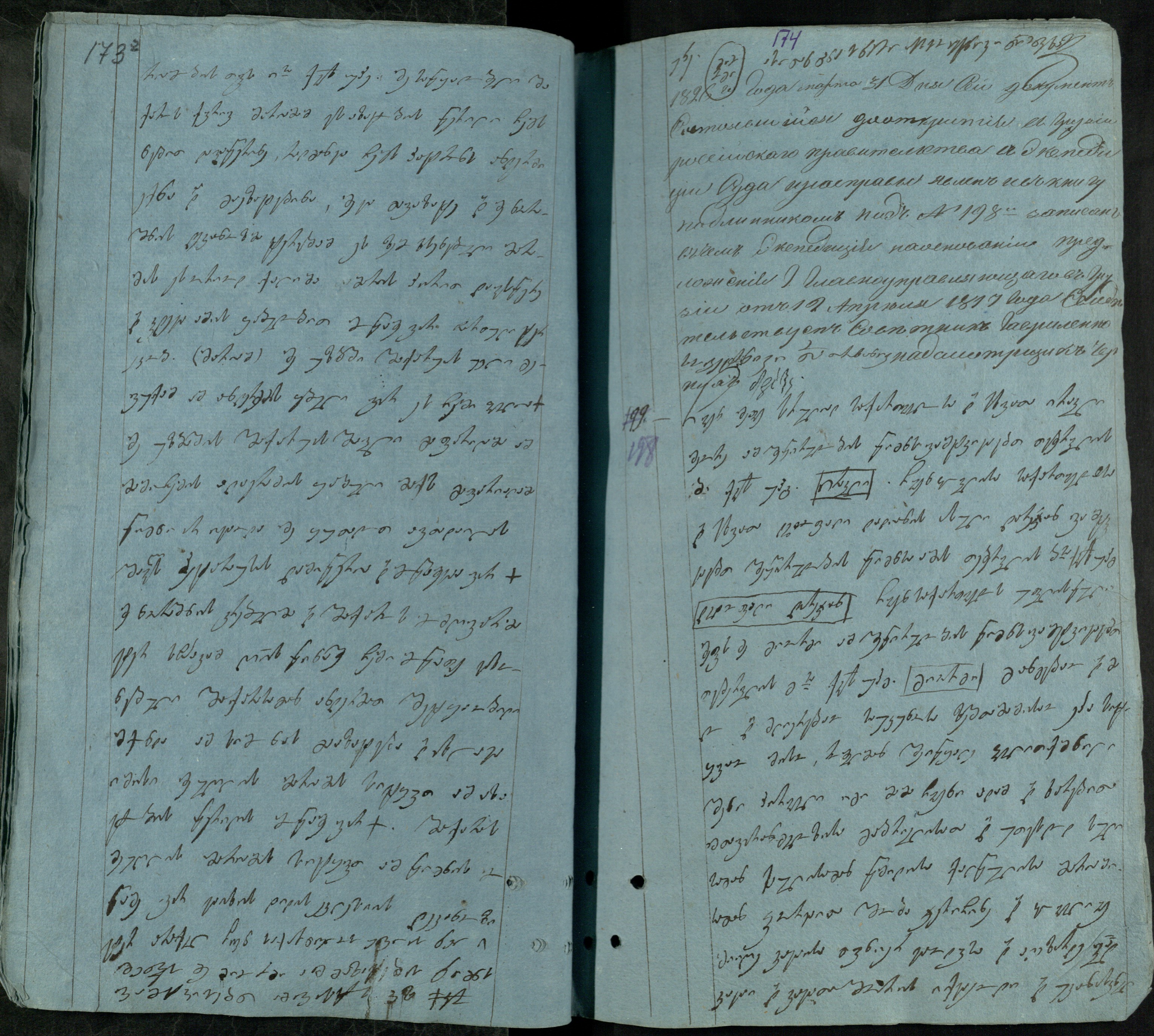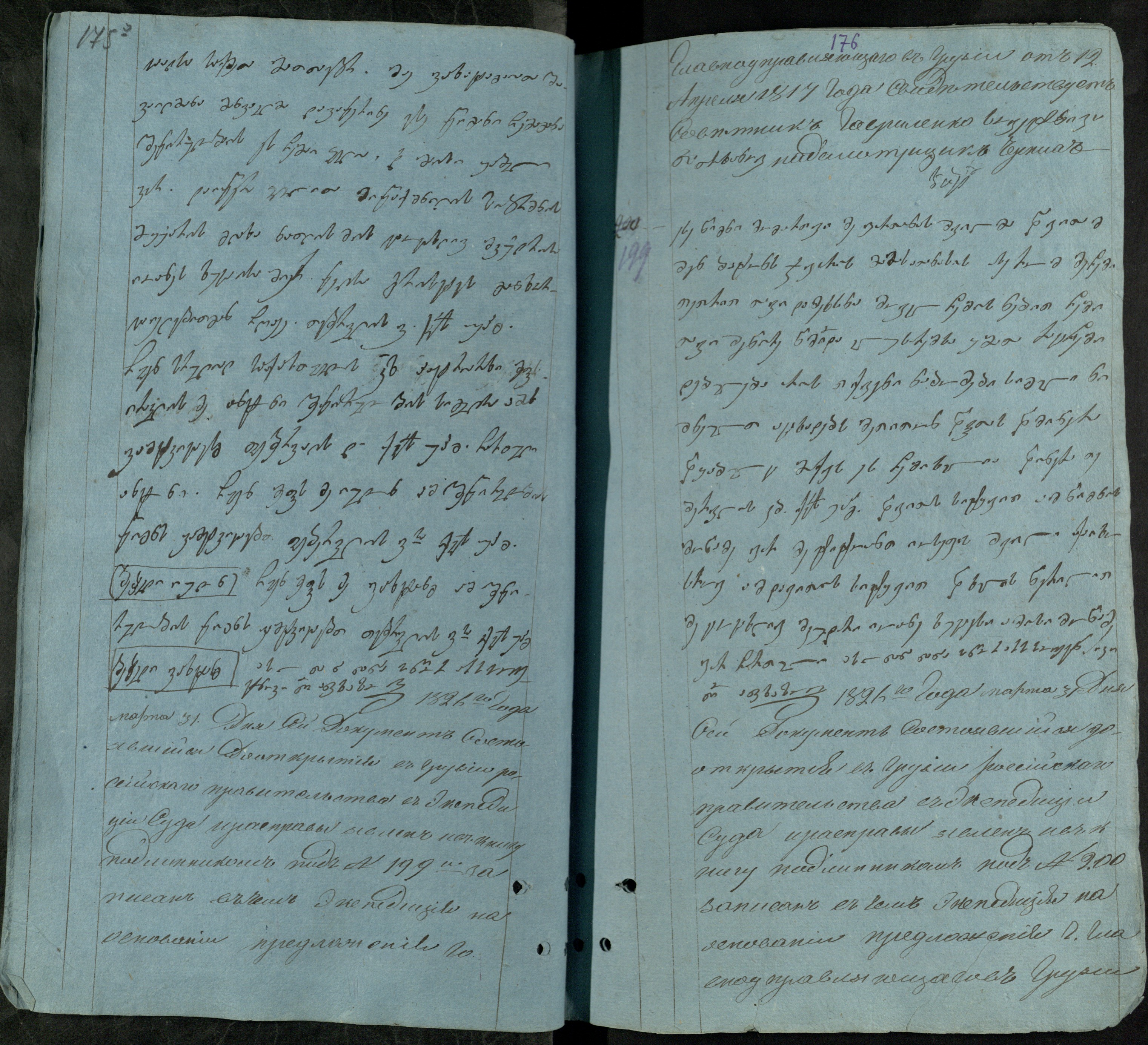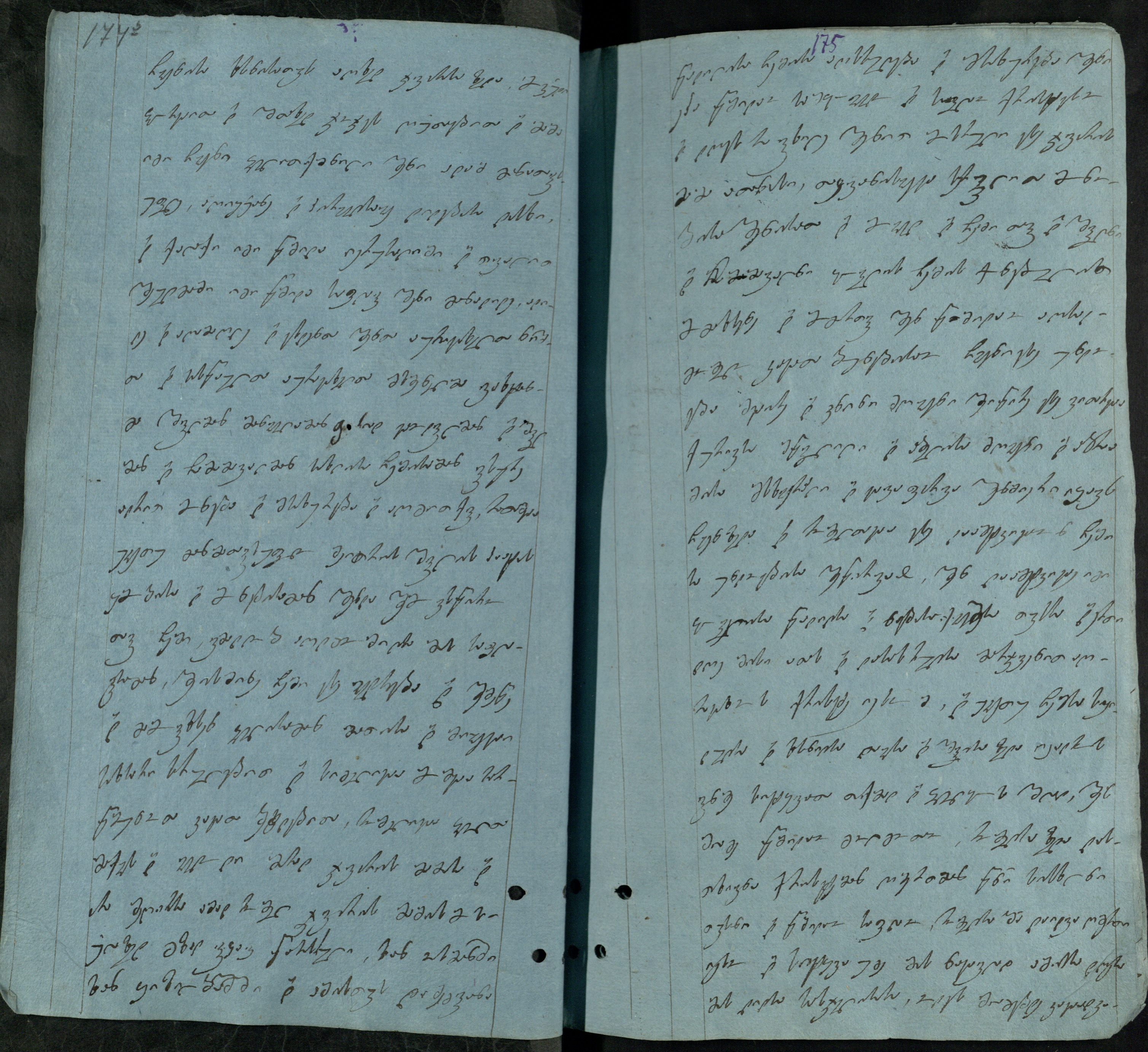 ქაღალდი ცისფერი, დაწერილი შავი მელნით.