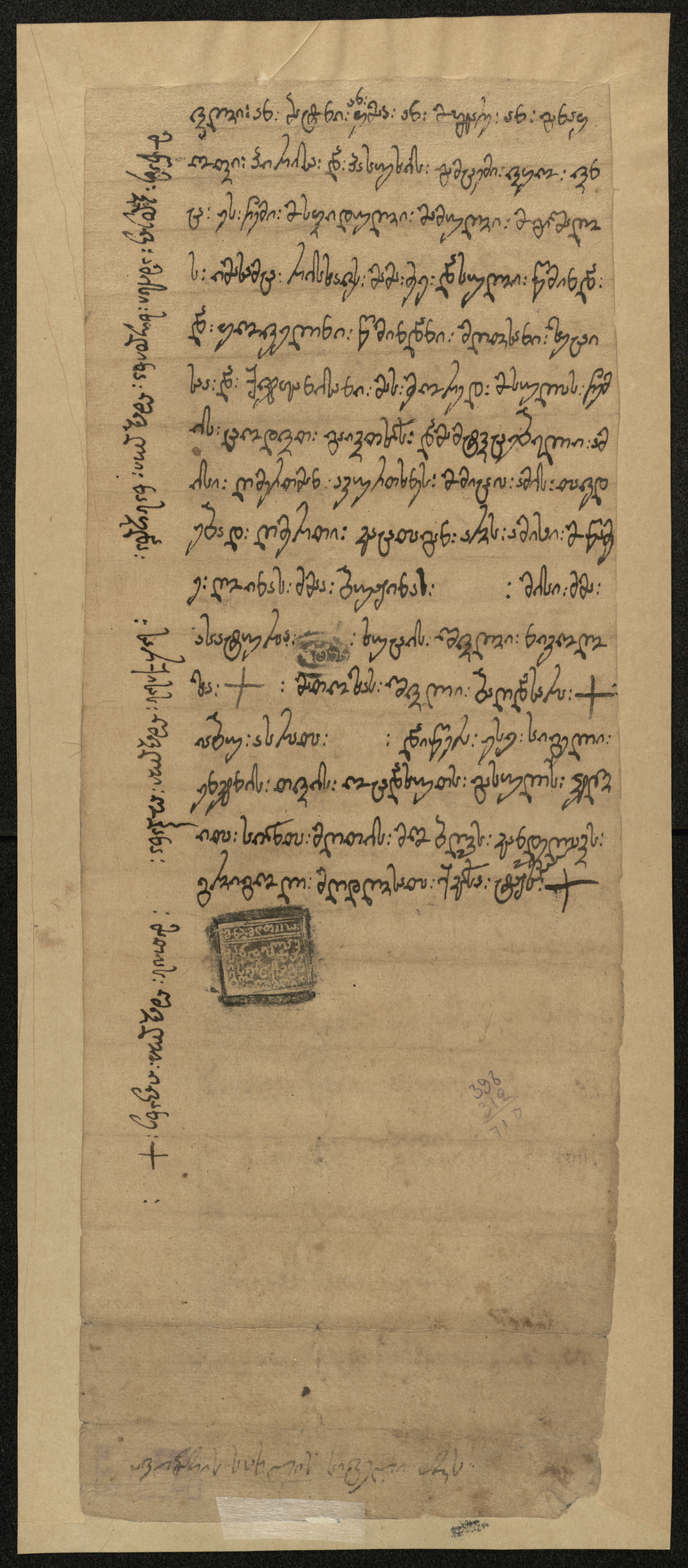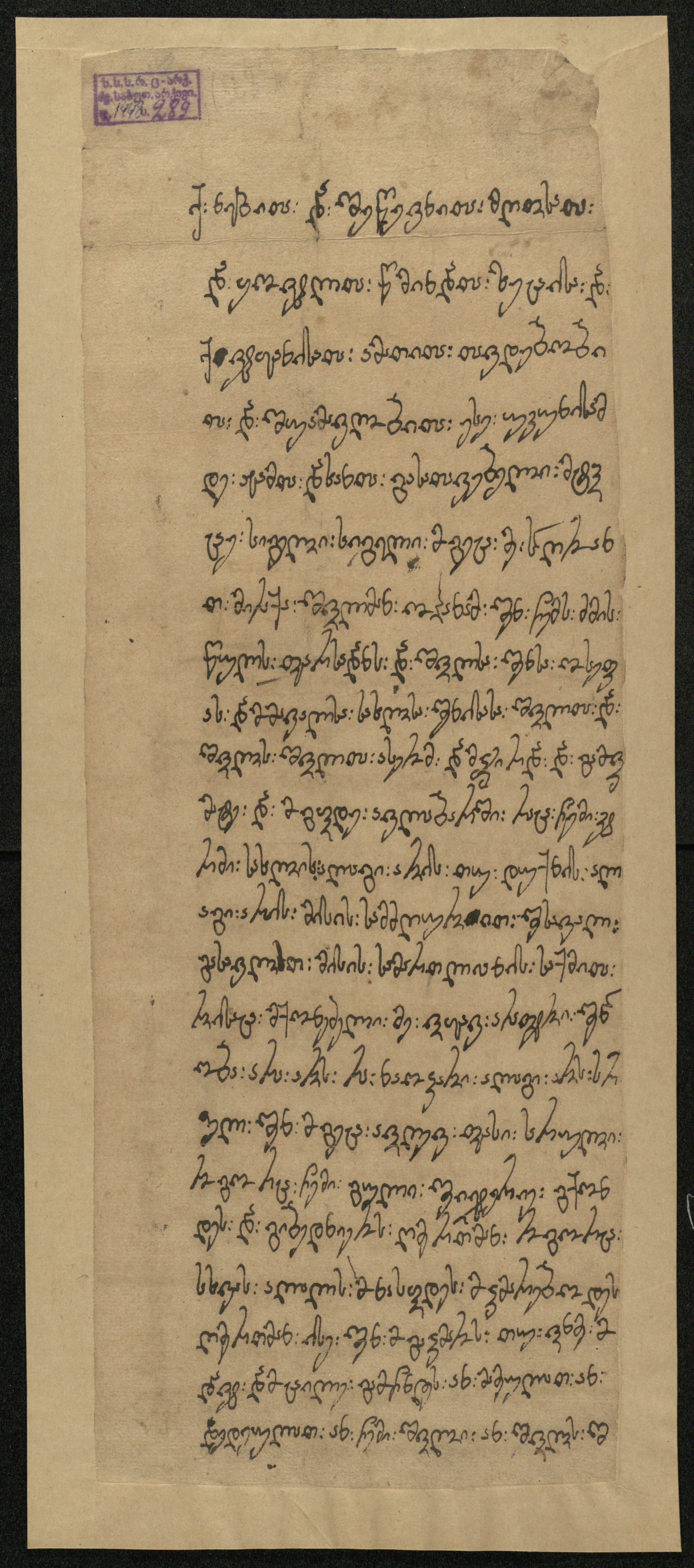 ქაღალდი, დაწერილი შავი მელნით.