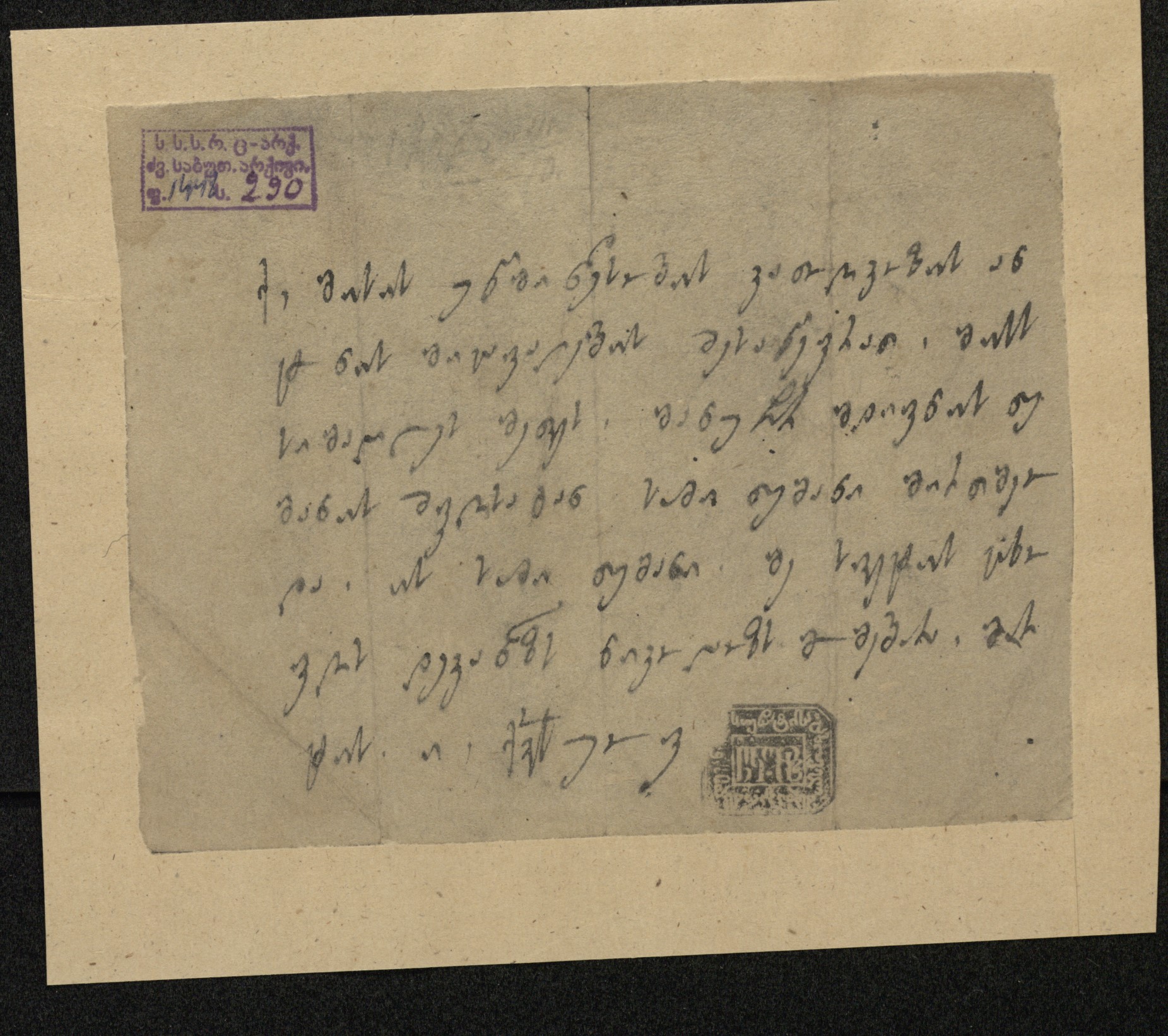 ქაღალდი, დაწერილი შავი მელნით.