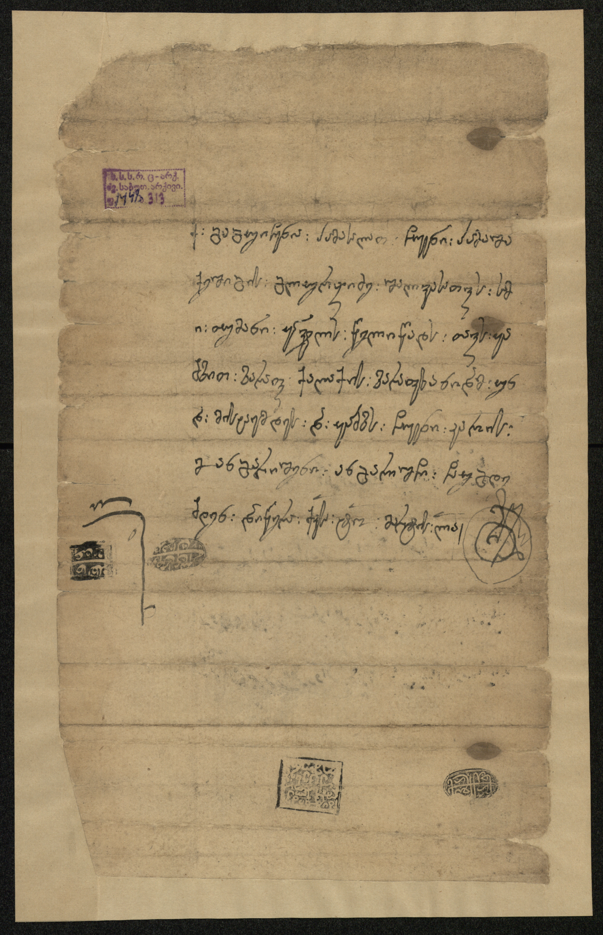 1. ახლავს გიორგი XI-ის ხელრთვა და ოთხი ბეჭედი სპარსული ლეგენდით.