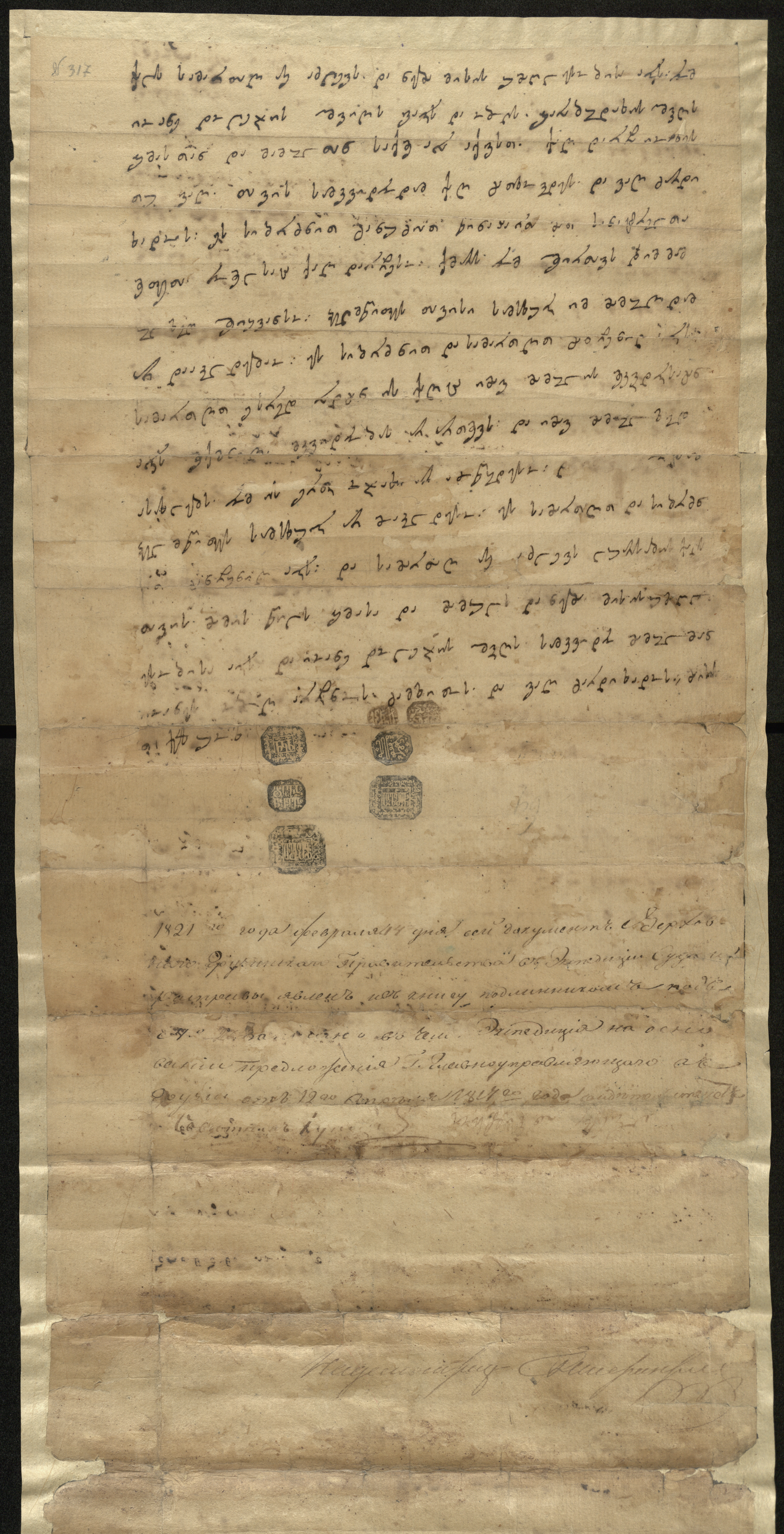 ქაღალდი ღია ყავისფერი, დაწერილი შავი მელნით.
