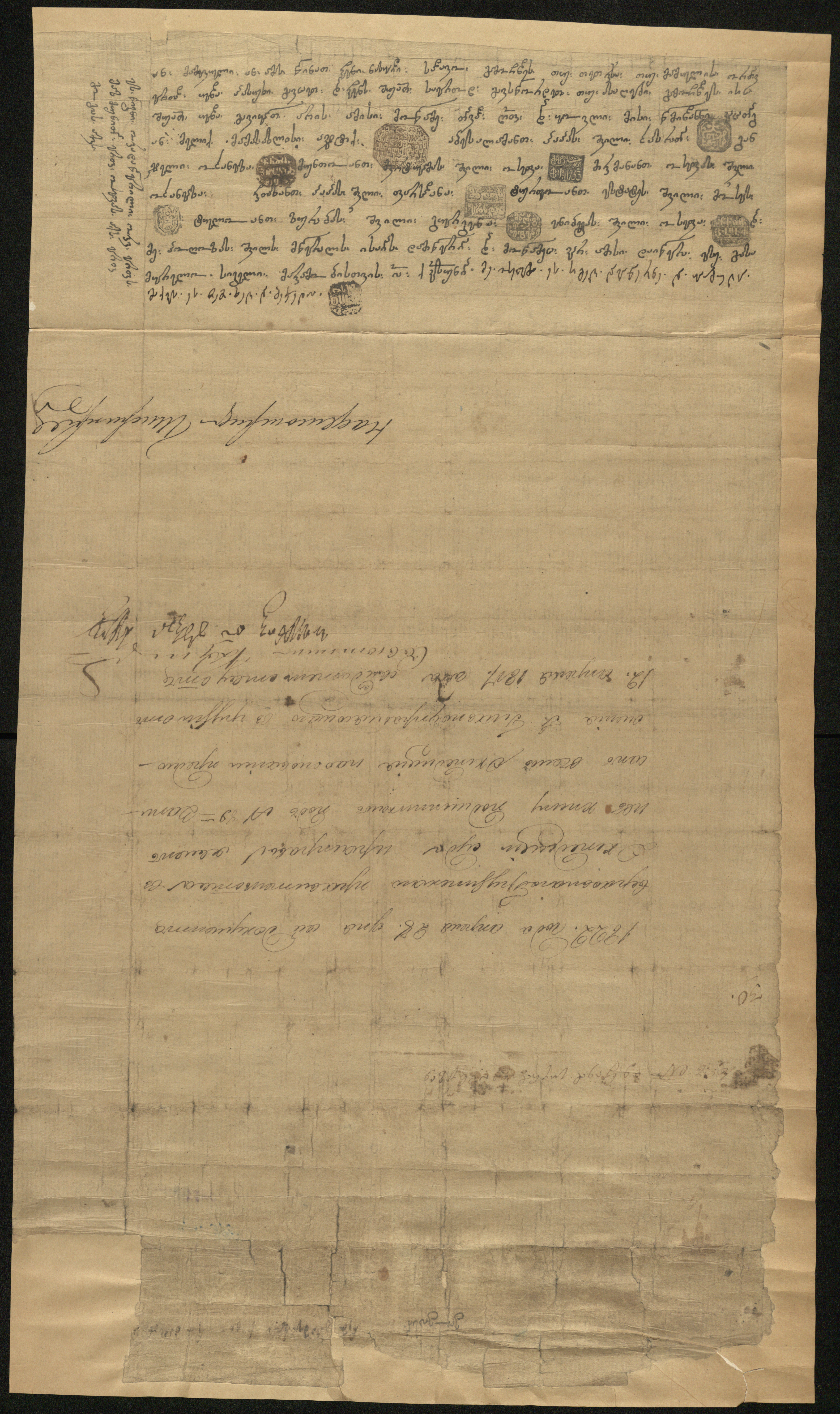 ქაღალდი დაწერილი ყავისფერი მელნით.