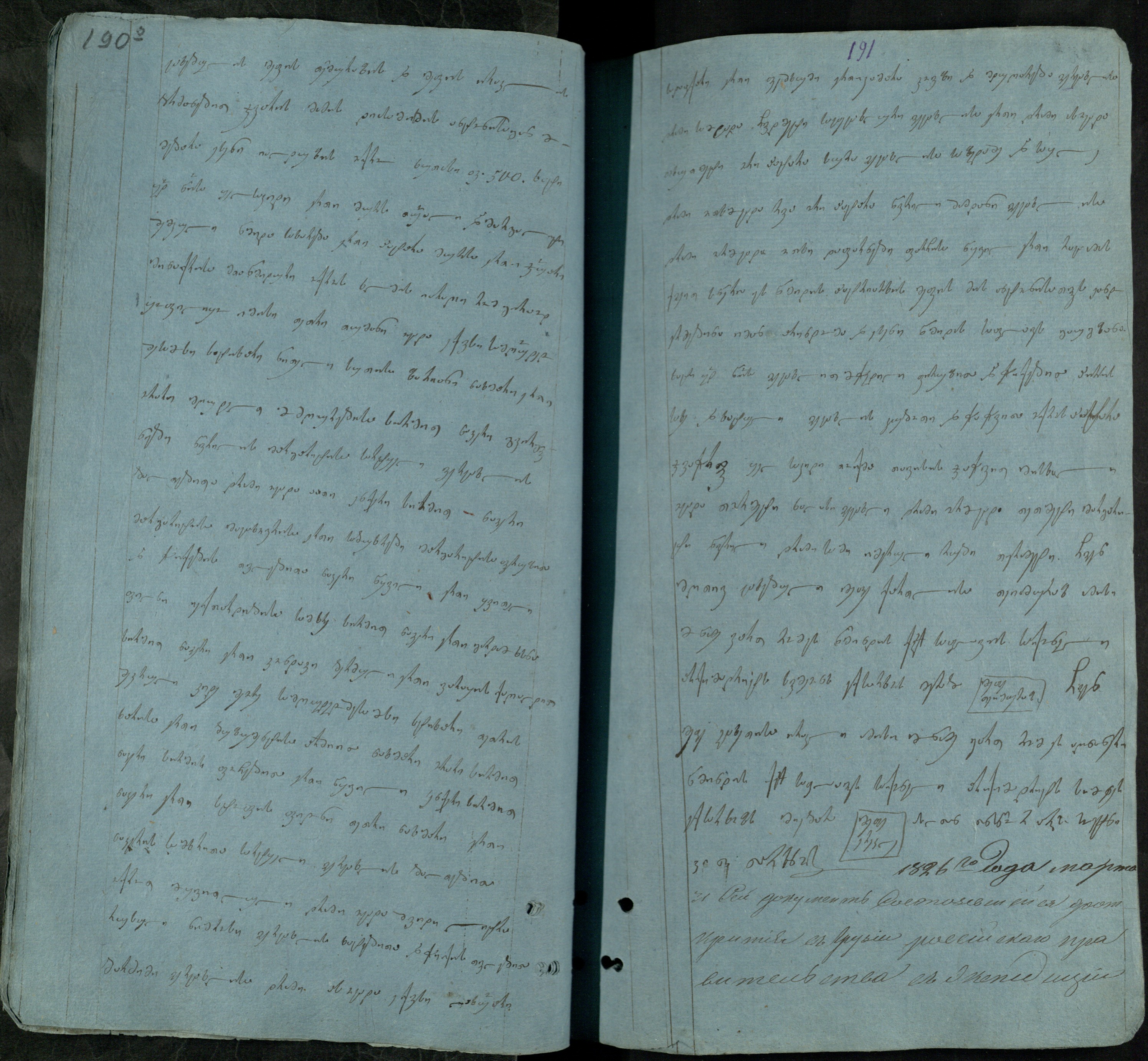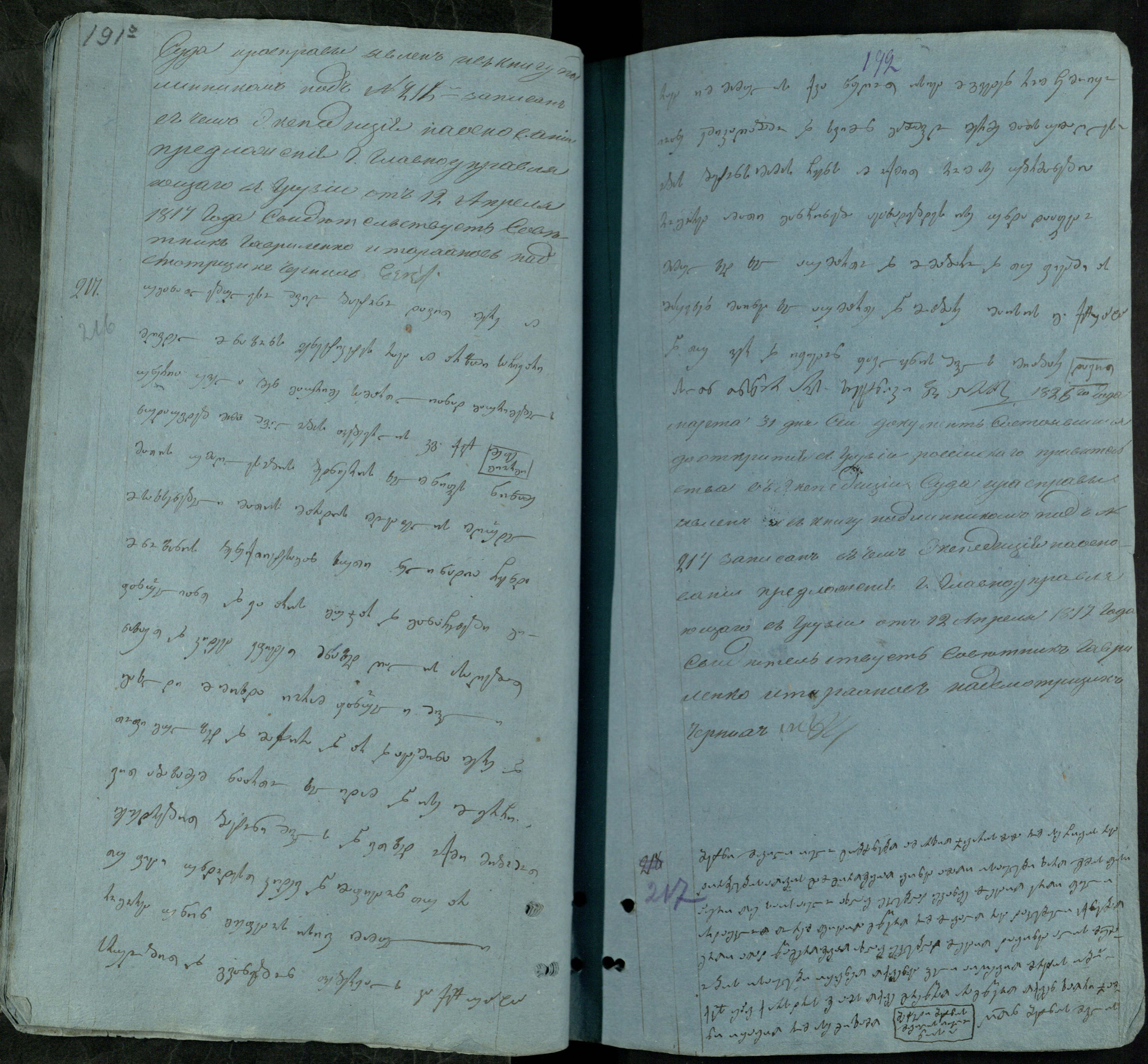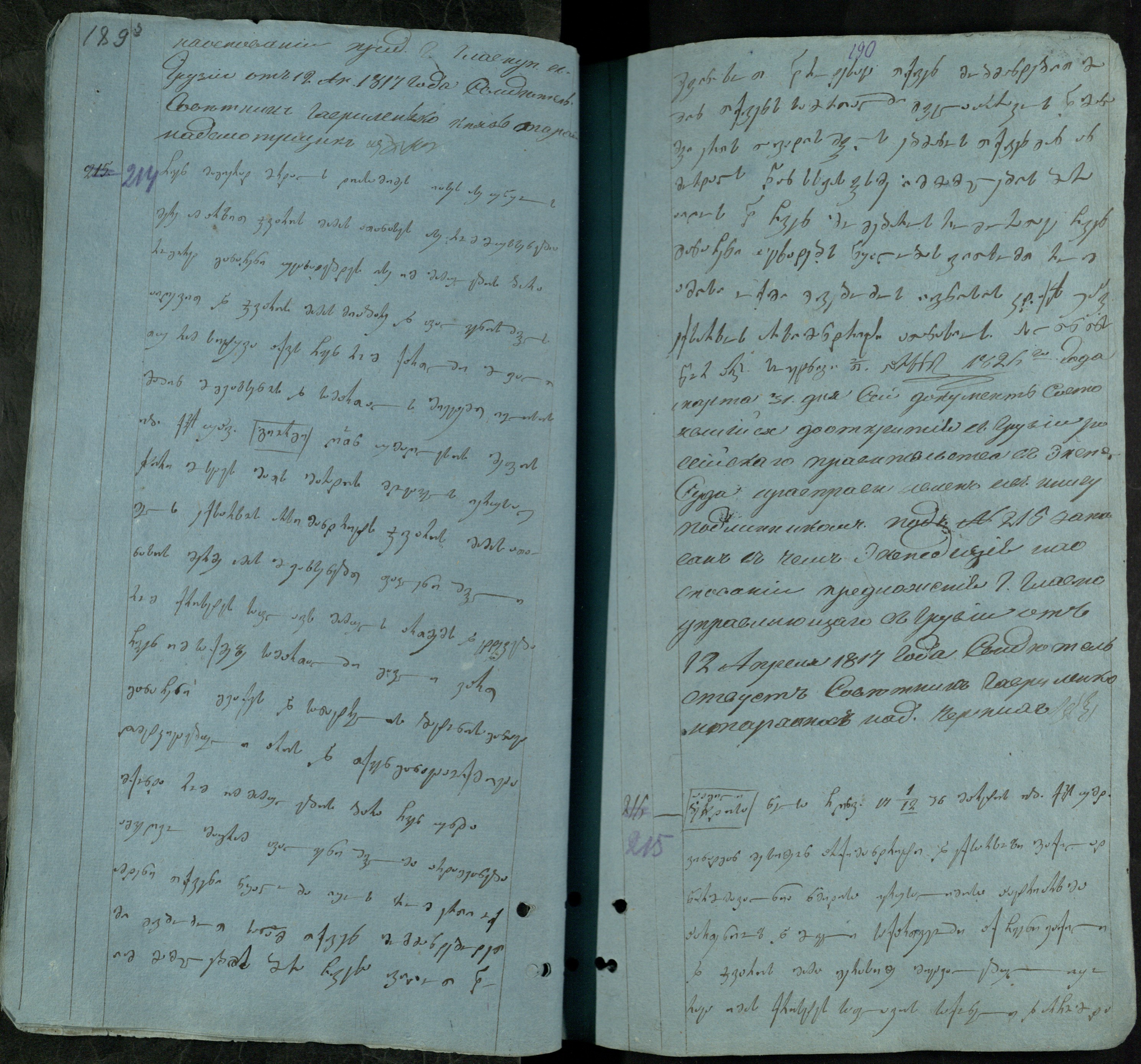 ქაღალდი ცისფერი, დაწერილ;ი შავი მელნით