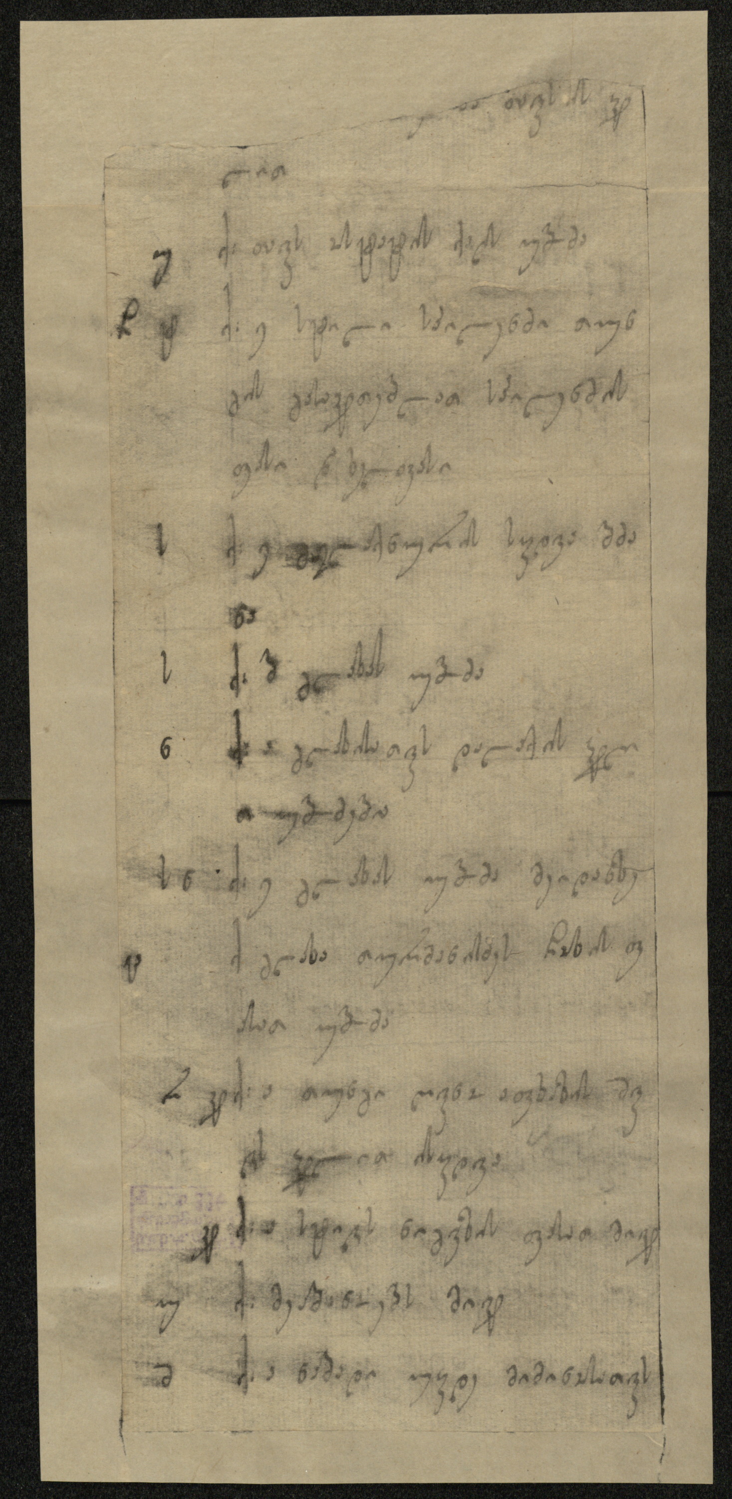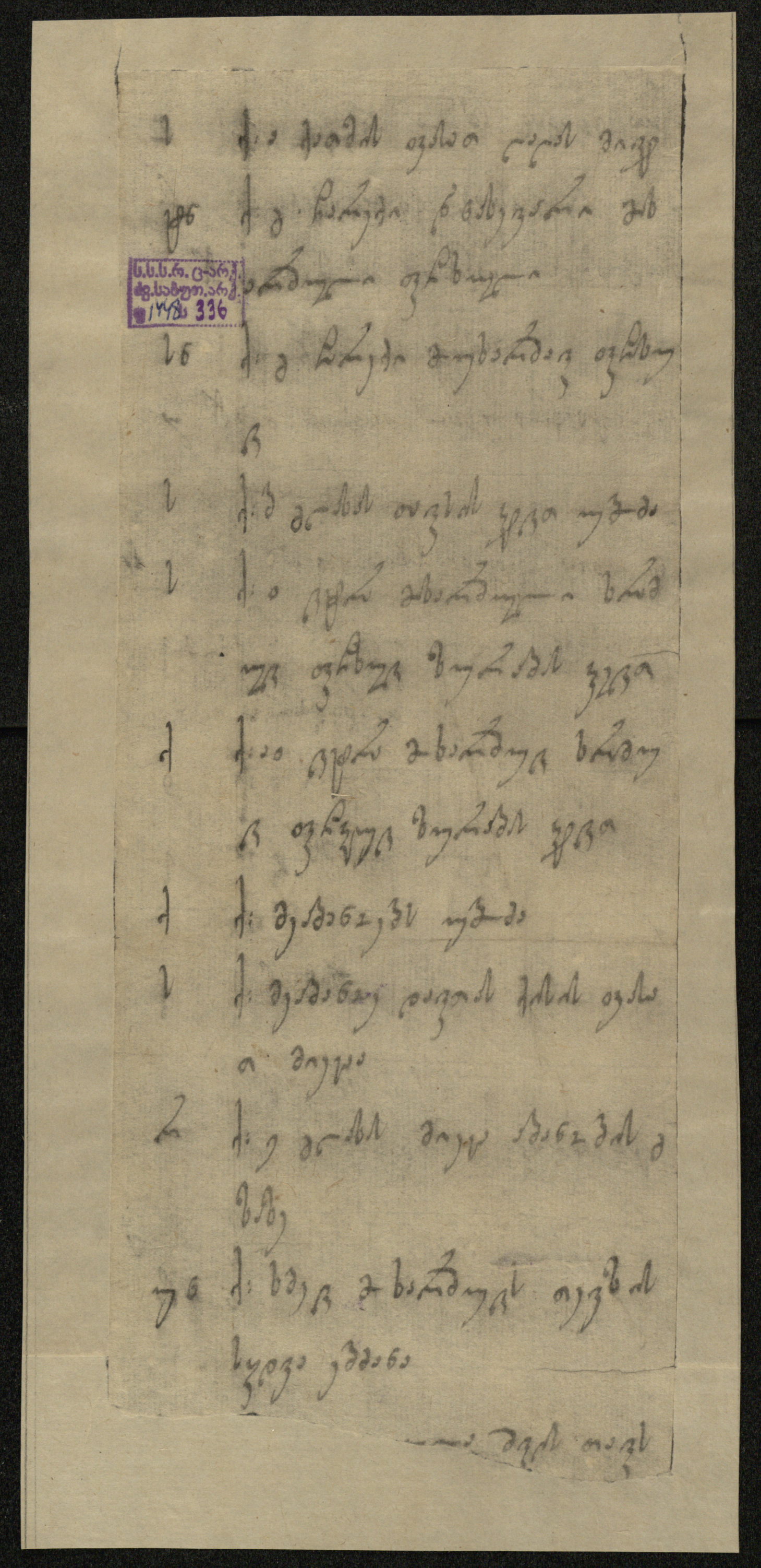 ქაღალდი დაწერილი ყავისფერი მელნით.