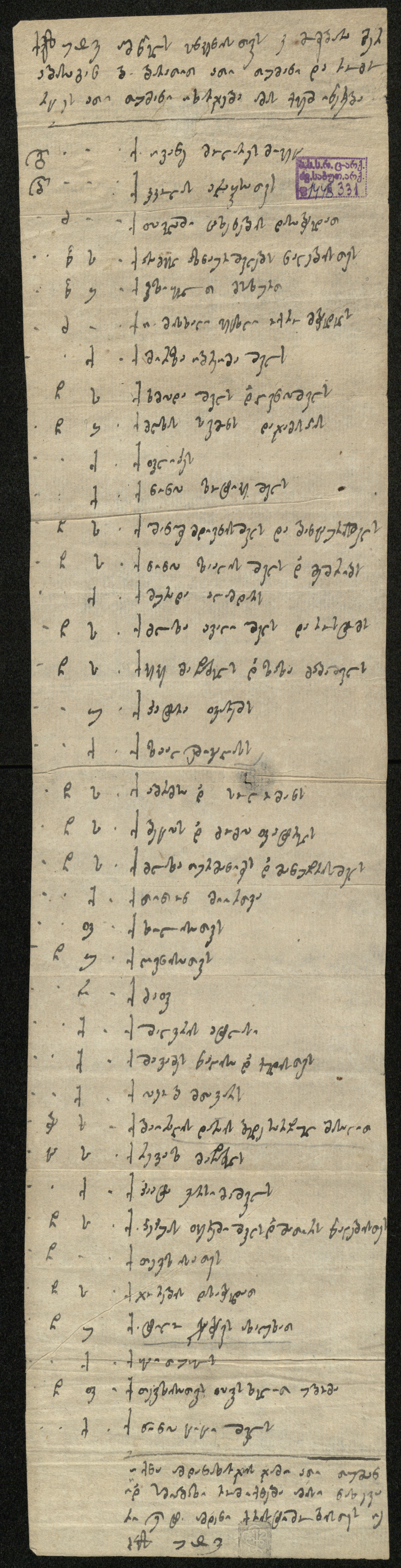 ქაღალდი, დაწერილი შავი მელნით.
