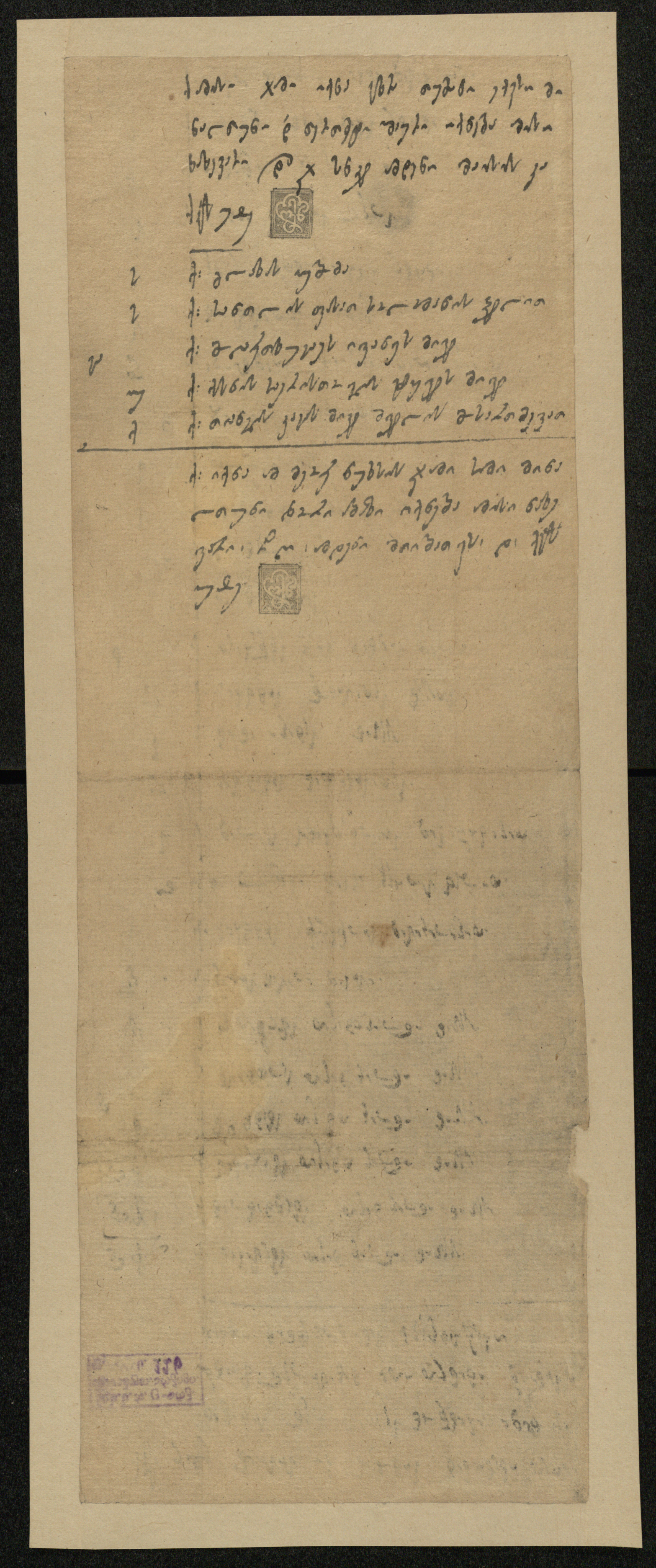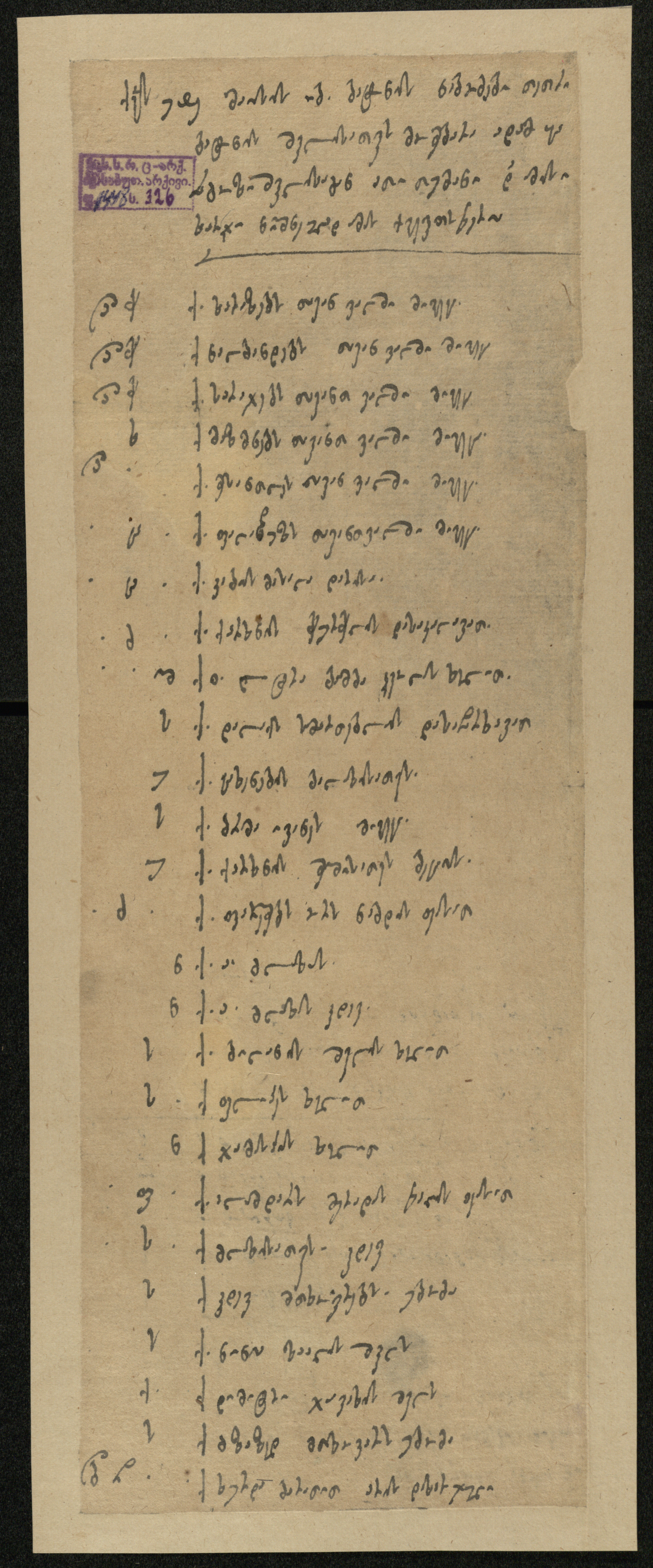 ქაღალდი, დაწერილი შავი მელნით.