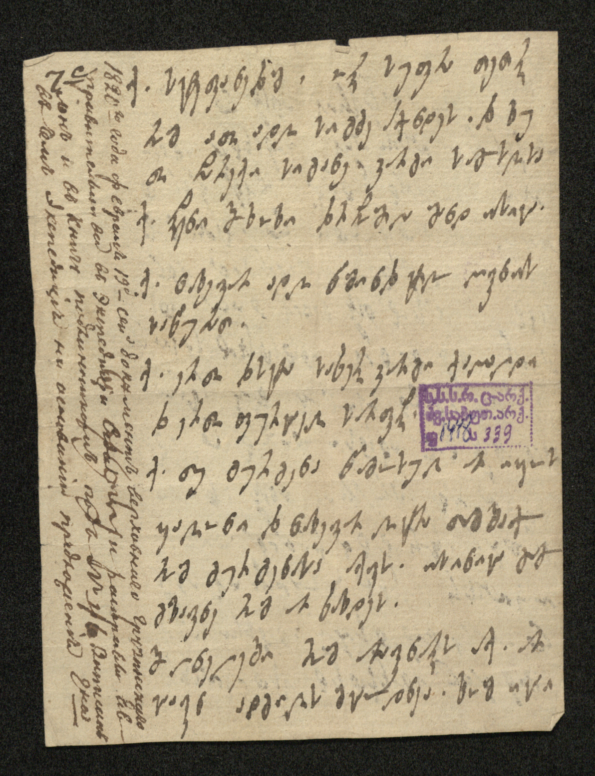 ქაღალდი დაწერილი ყავოისფერი მელნით.