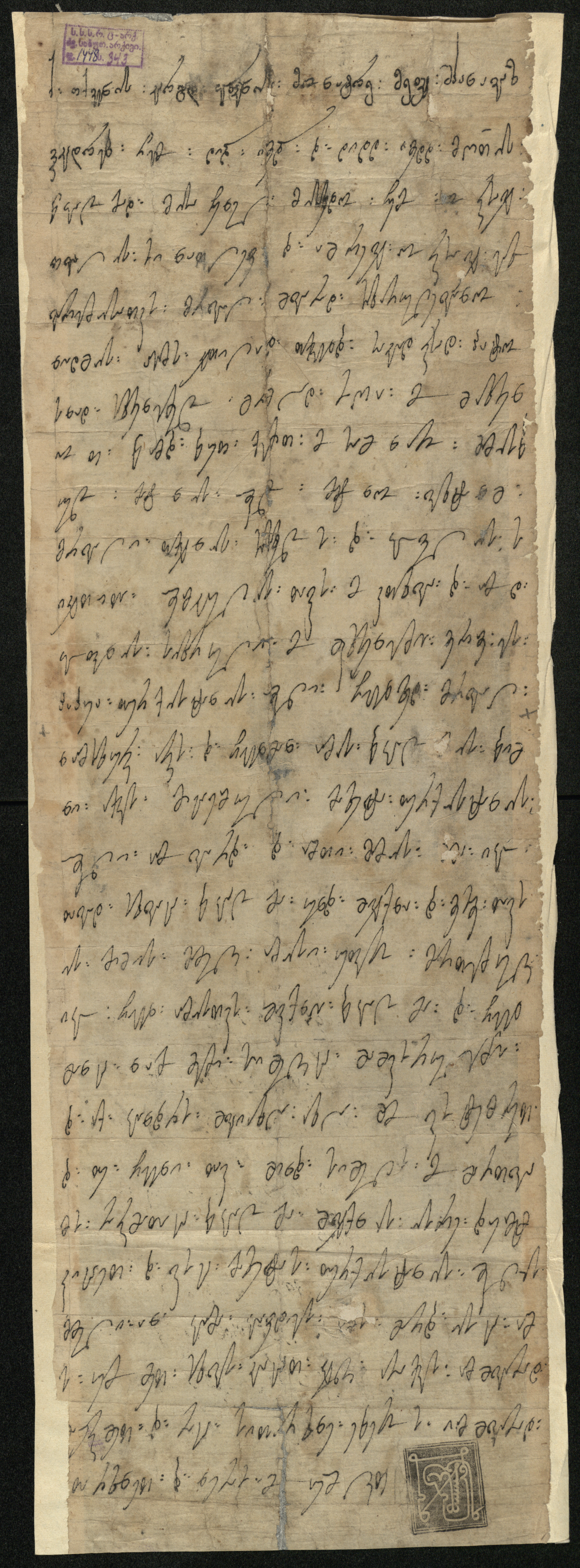 ლაქიანი ქაღალდი, დაწერილი ყავისფერი მელნით.
