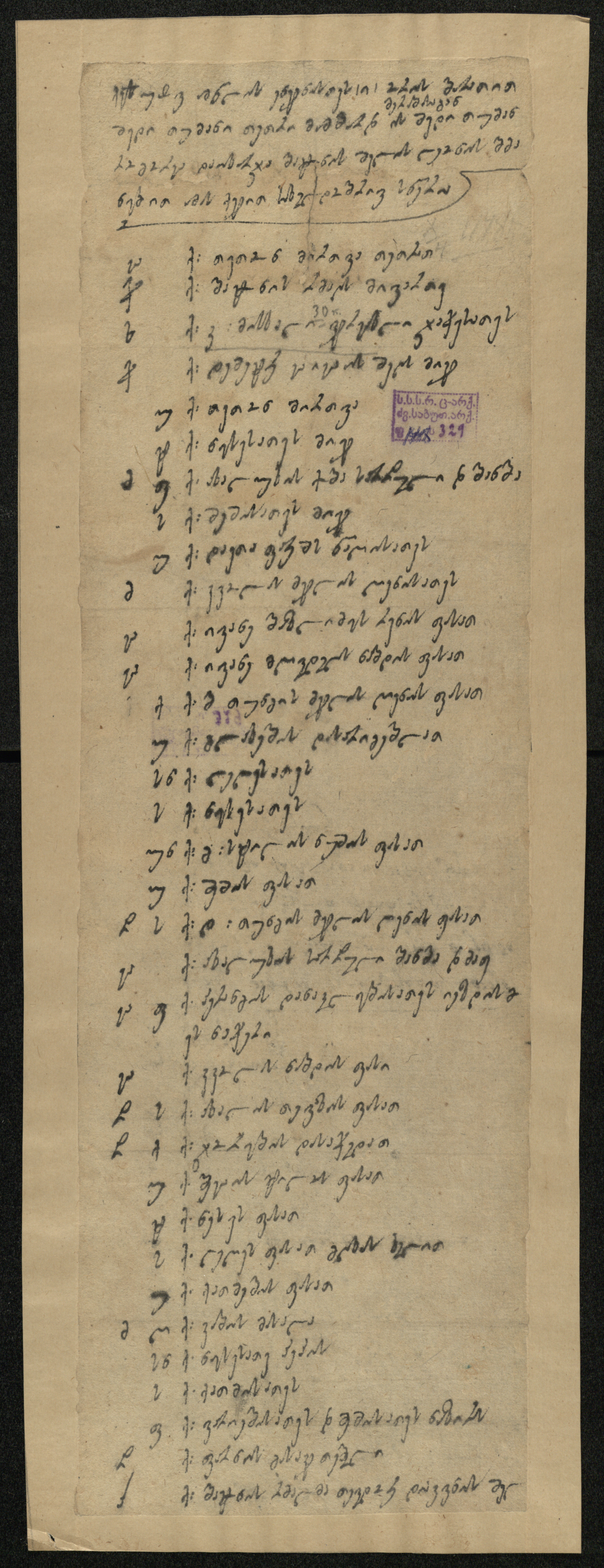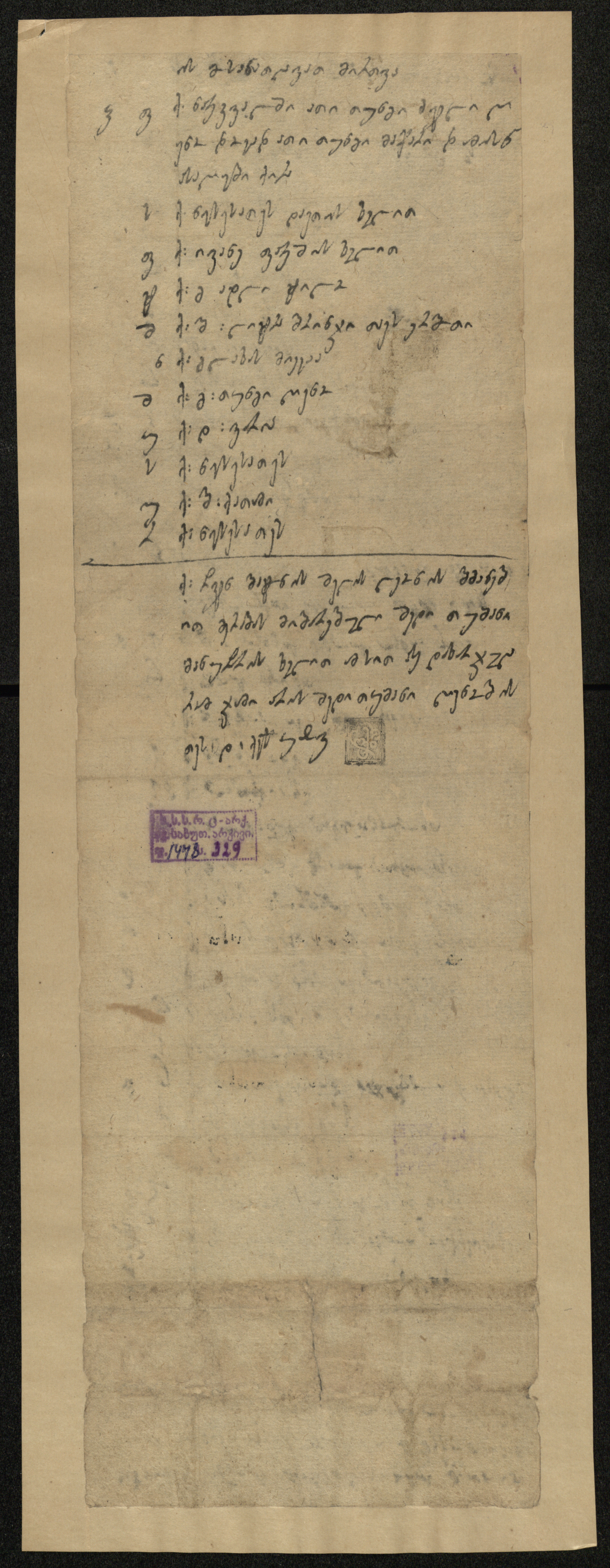 ქაღალდი, დაწერილი შავი მელნით.
