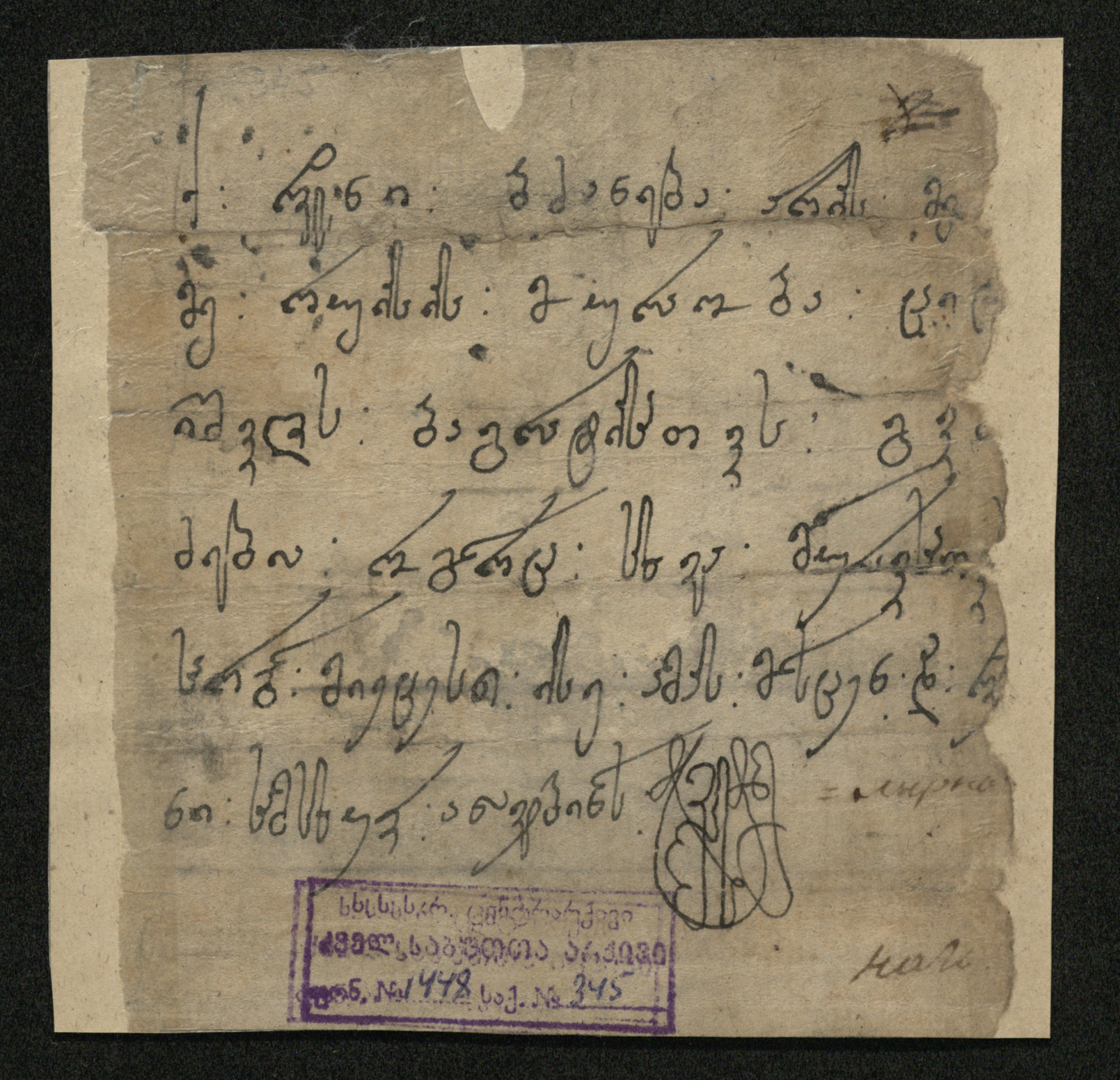 ქაღალდი, დაწერილი შავი მელნით.