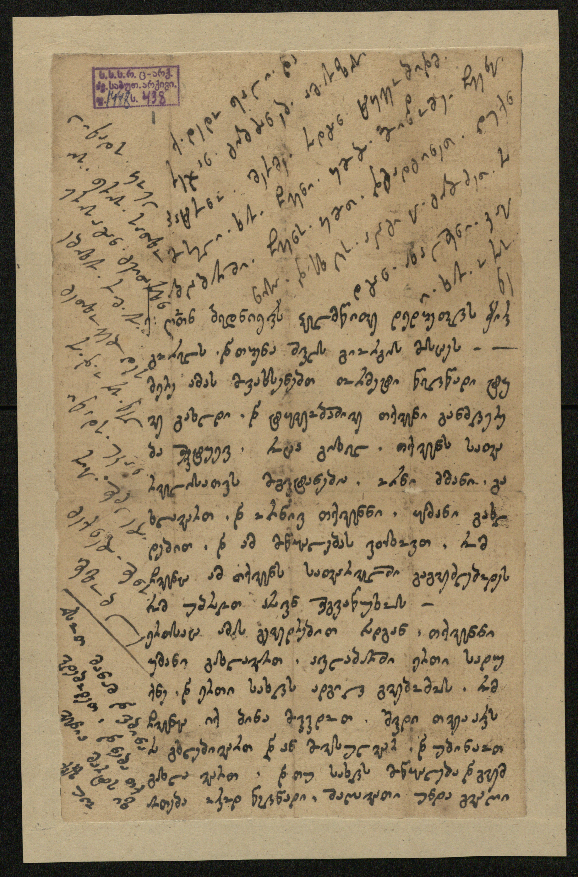 ქაღალდი, დაწერილი შავი მელნით.