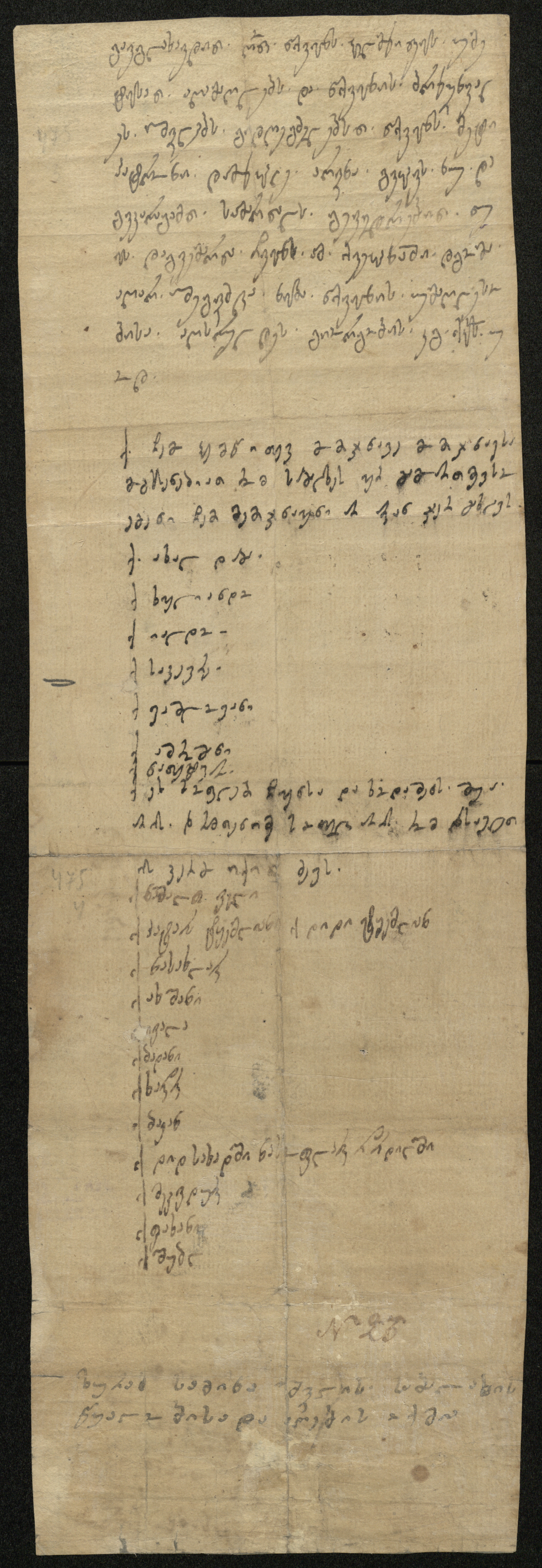 ქაღალდი, დაწერილი ყავისფერი მელნით.
