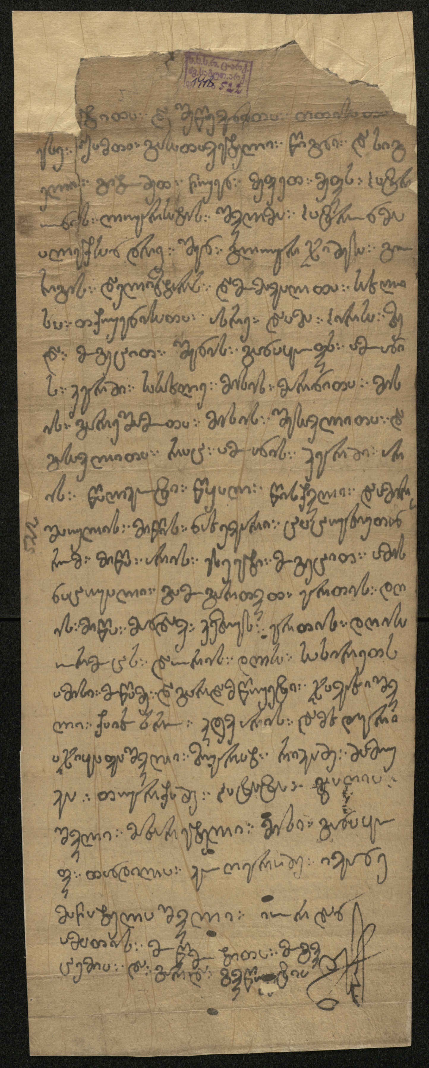 ქაღალდი, დაწერილი შავი მელნით.