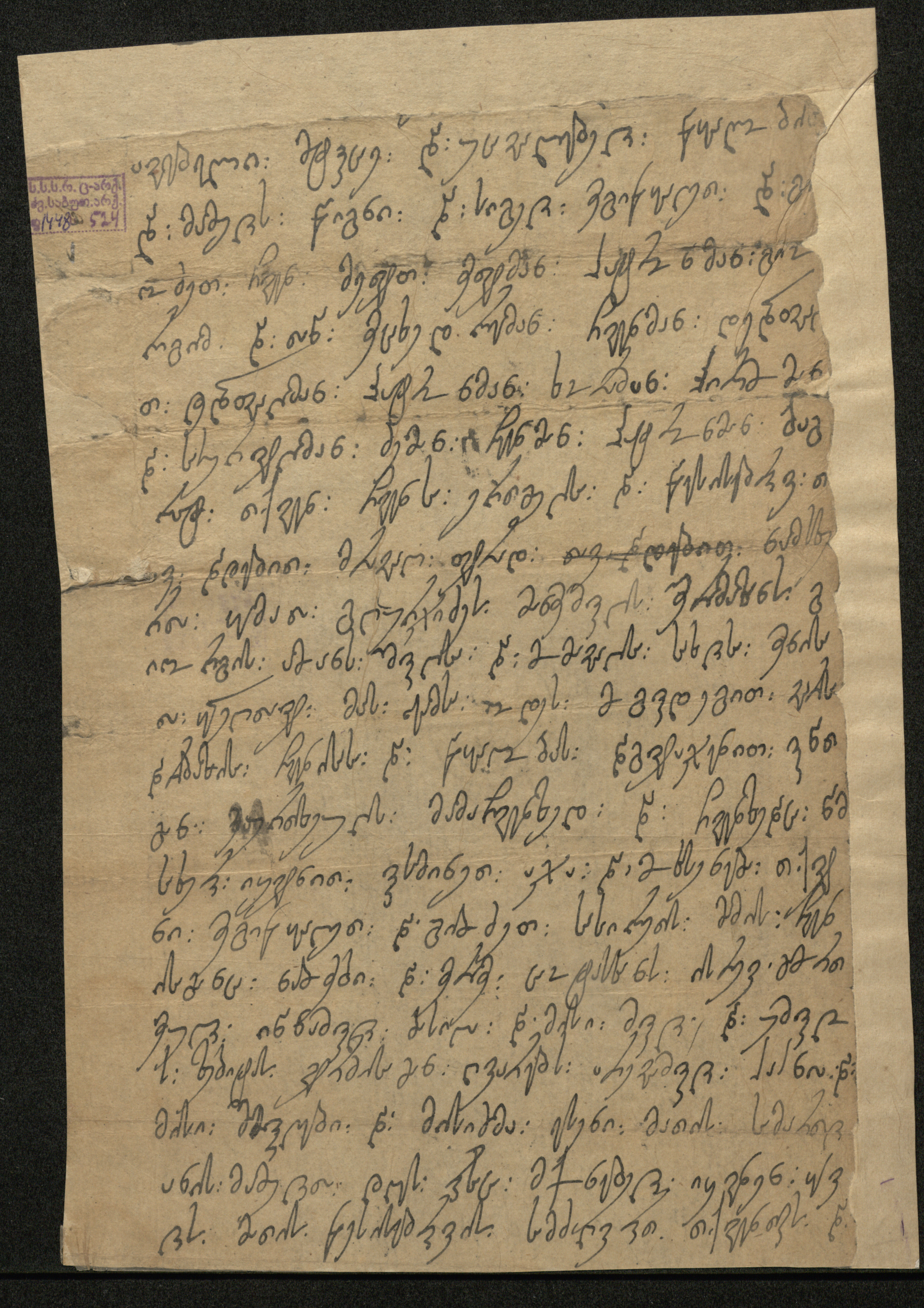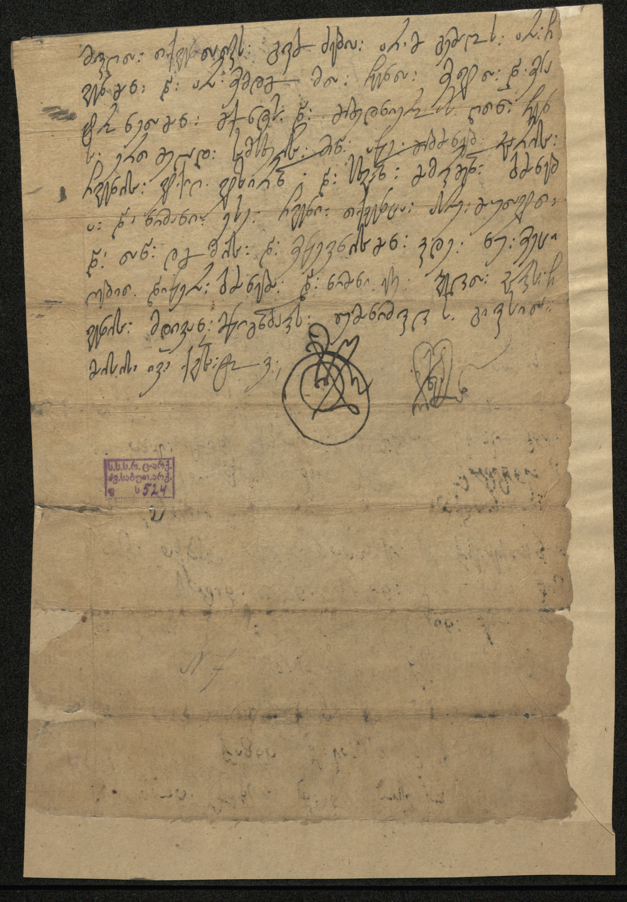 ქაღალდი, დაწერილი შავი მელნით.