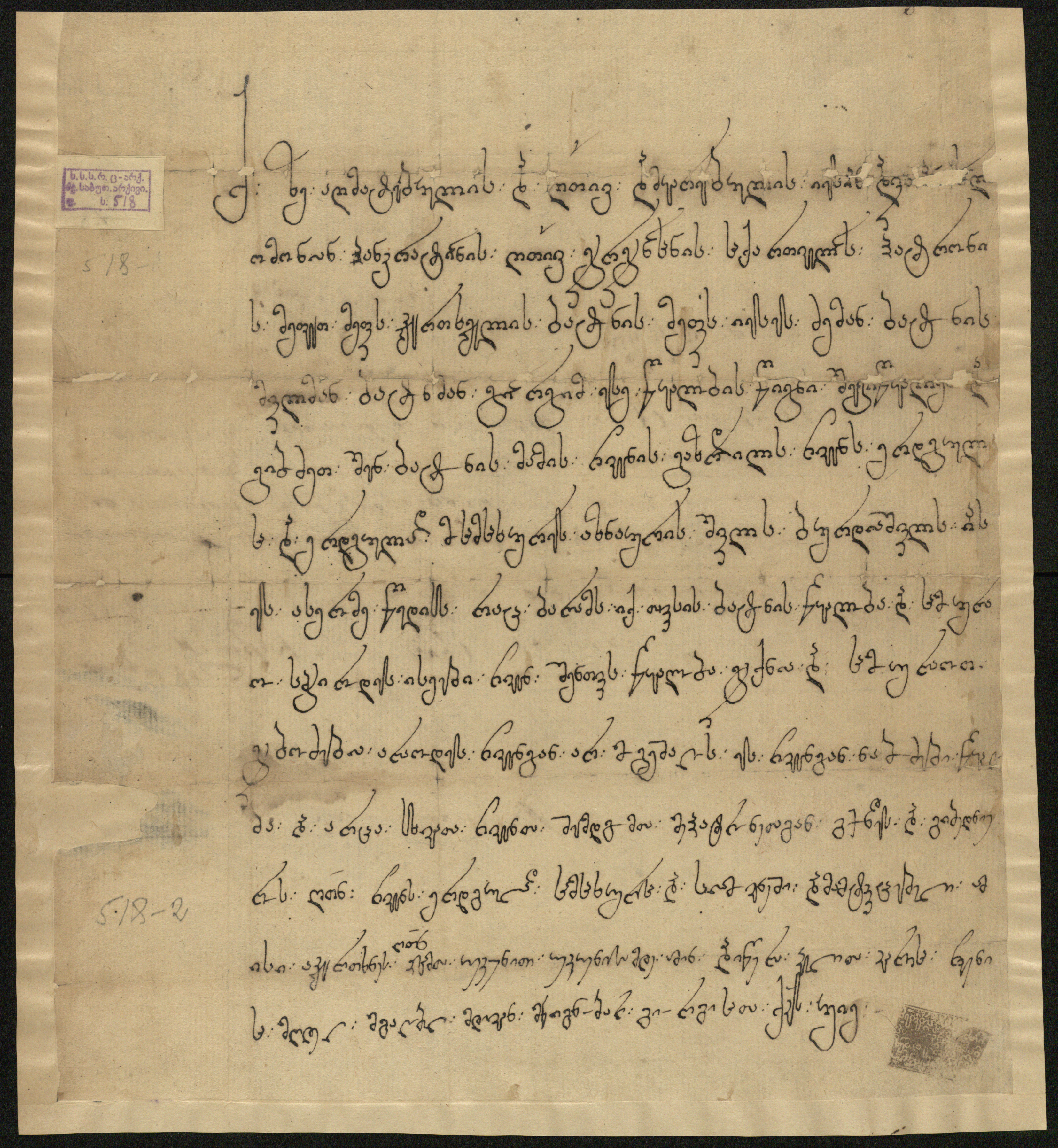 ჭვირნიშნიანი ქაღალდი, დაწერილი შავი მელნით.