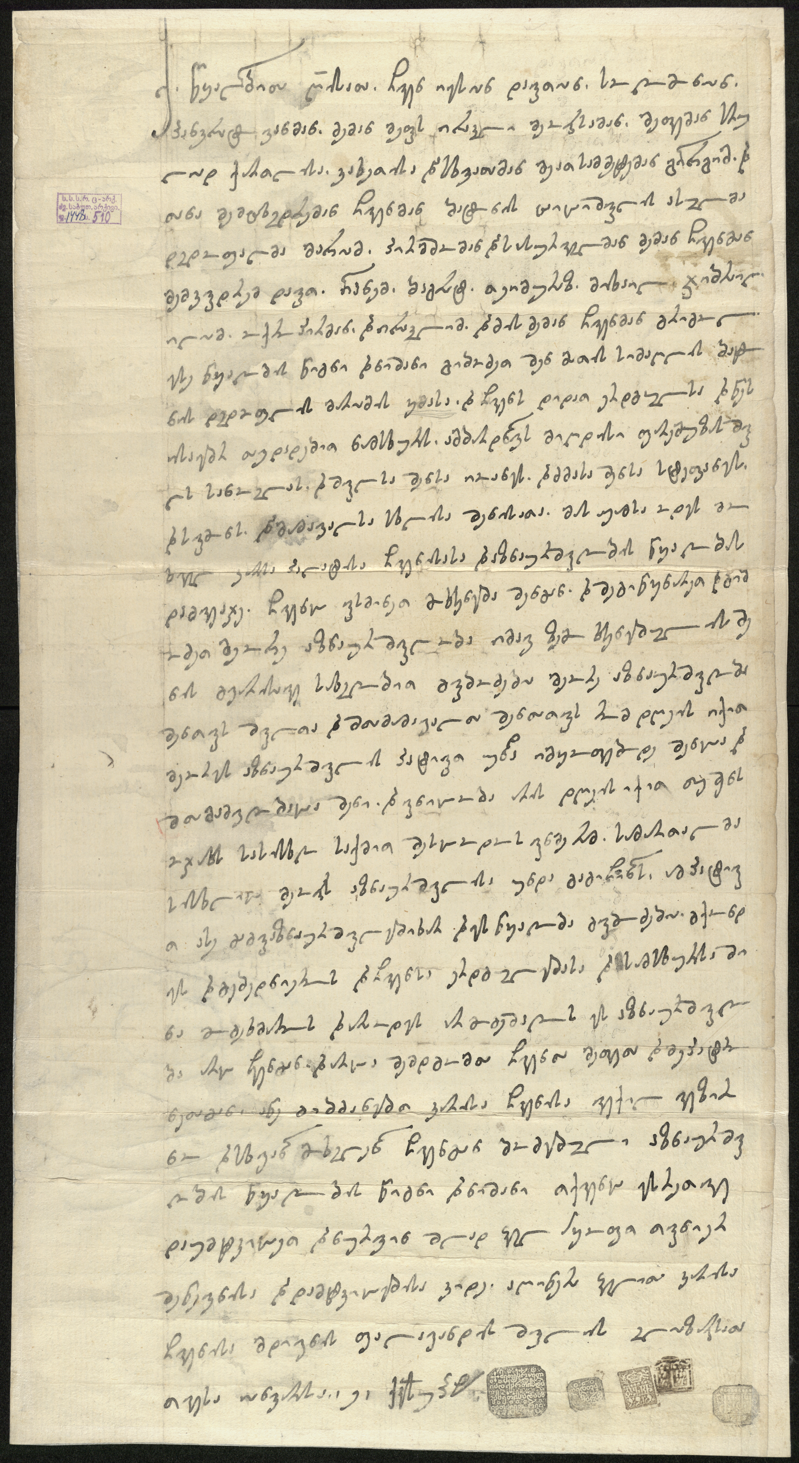 ახლავს დიდი ზომის ქანწილი, ყვავილოვანი ორნამენტით, შესრულებული შავი მელნით.