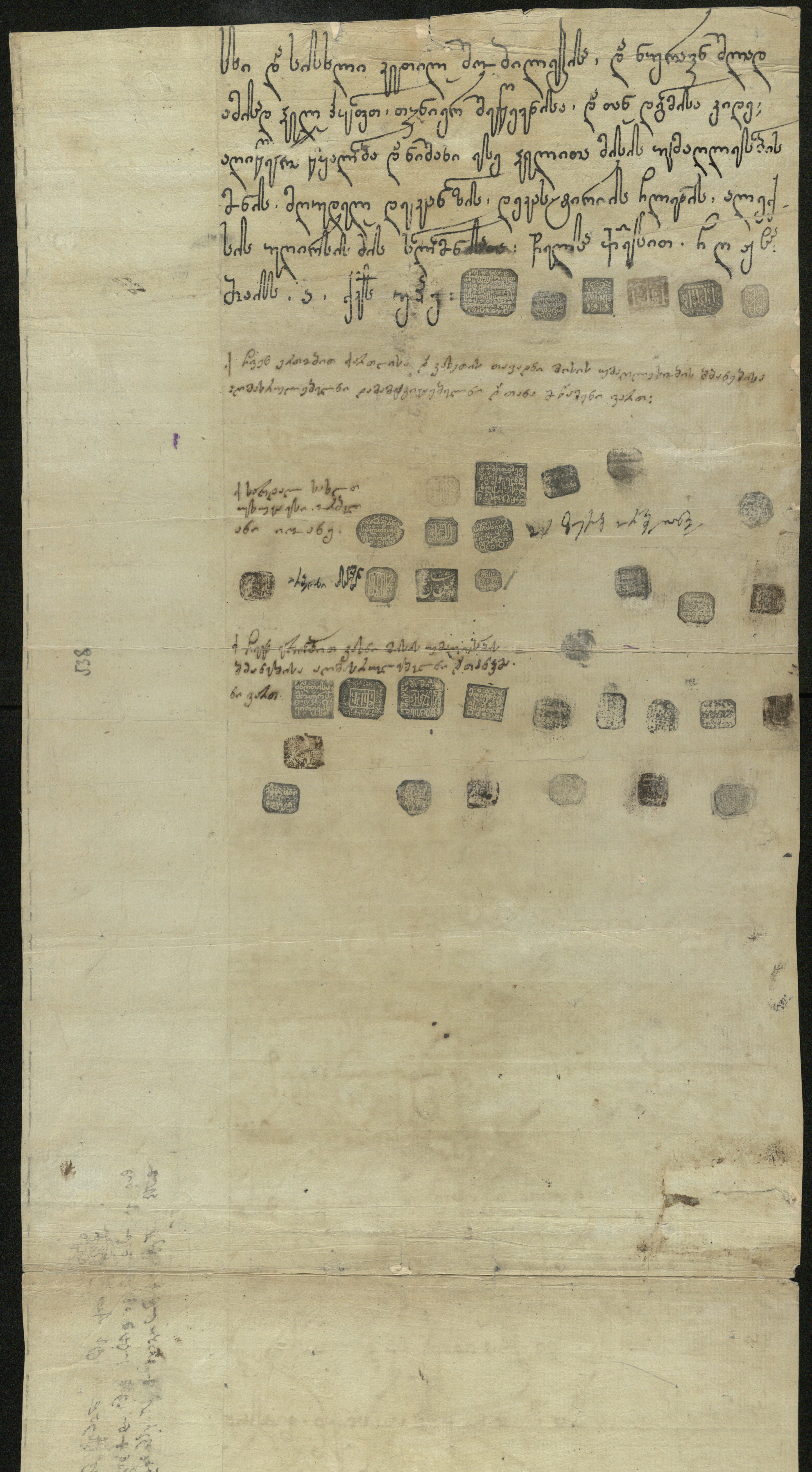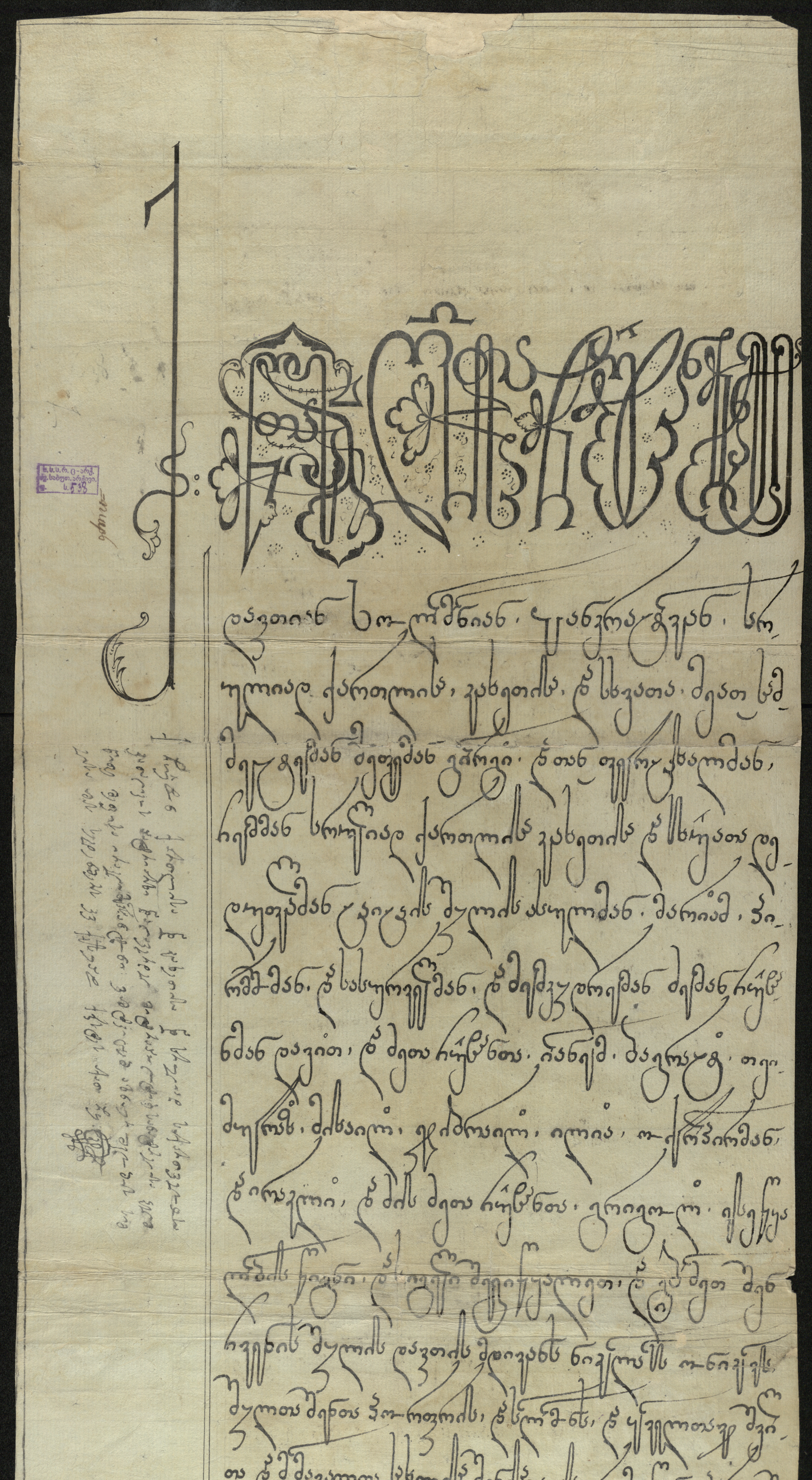 1. ახლავს დიდი ზომის ქანწილი ყვავილოვანი ორნამენტით, შესრულებული შავი მელნით.