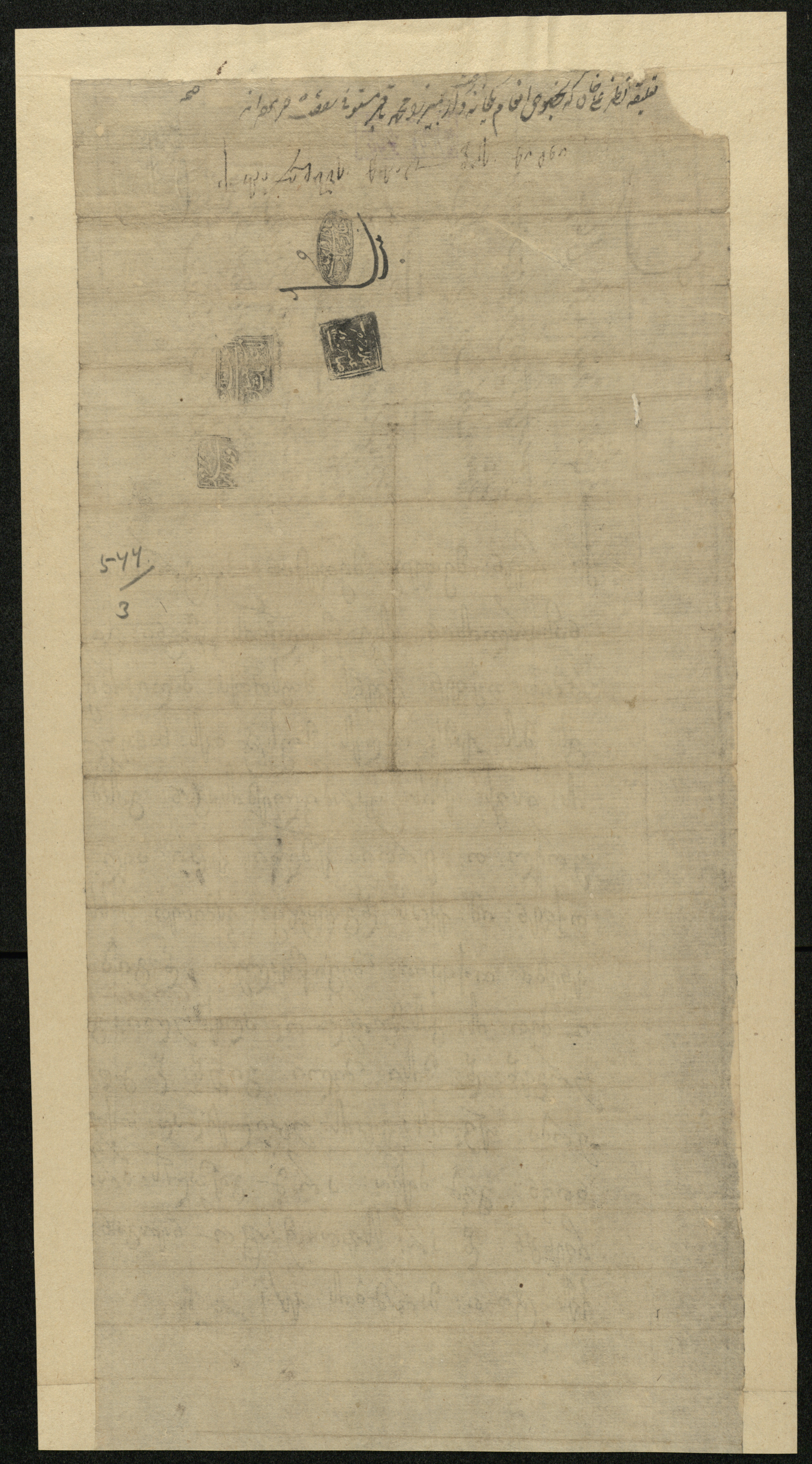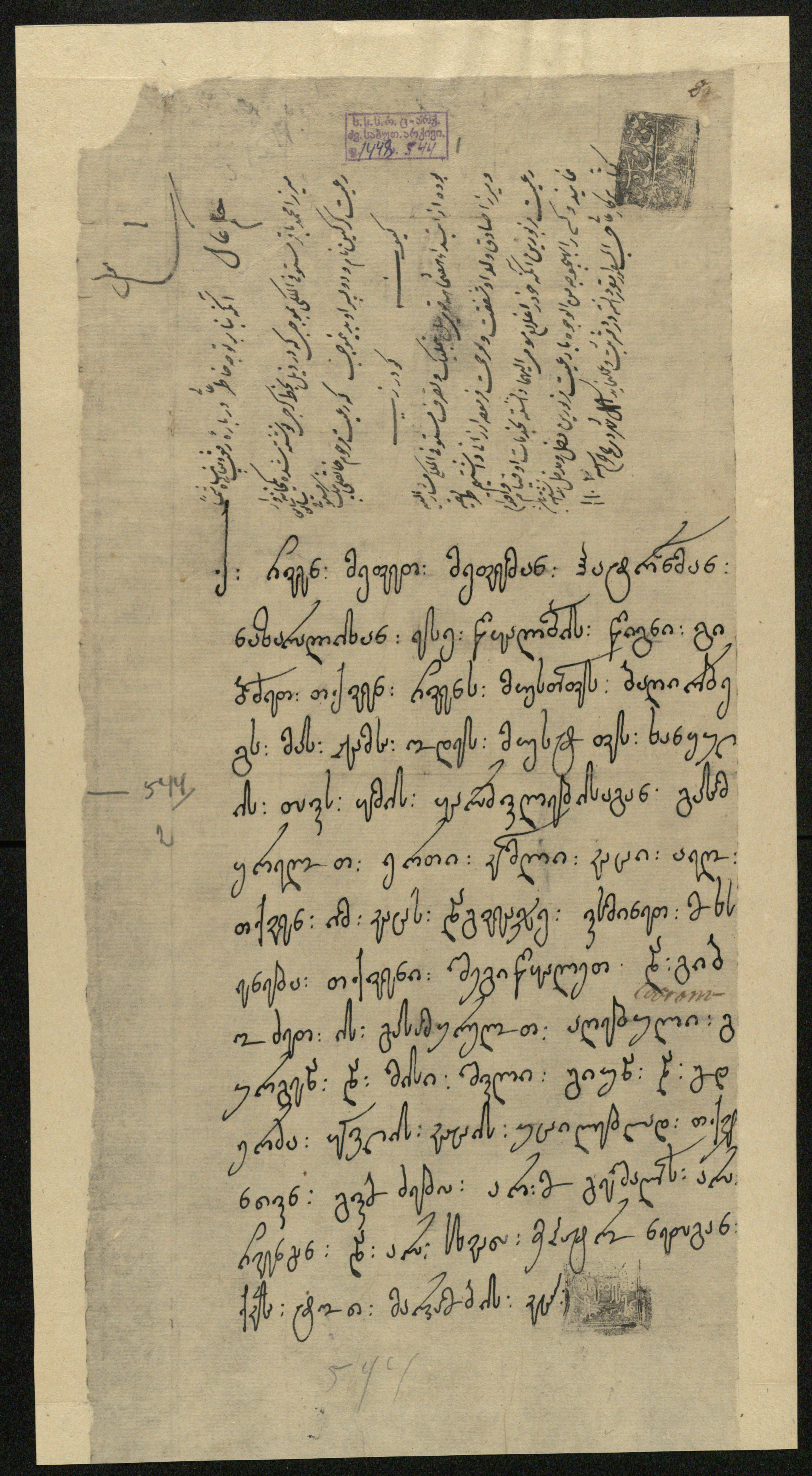 ქაღალდი, დაწერილი შავი მელნით.