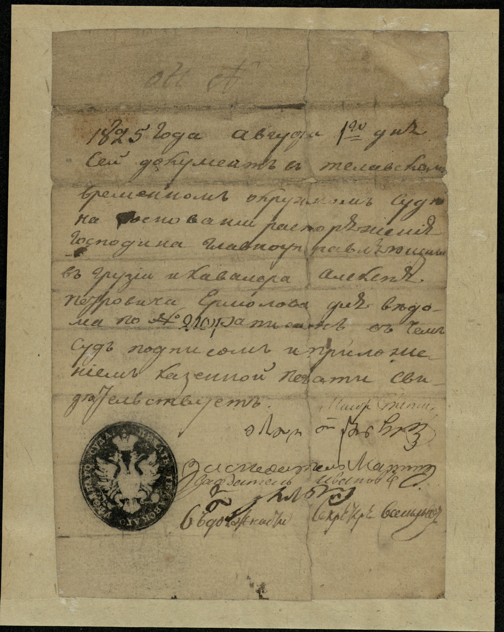 1. რეგისტრირებულია რუსული ადმინისტრაციის მიერ 1825 წ. 1 აგვისტოს.