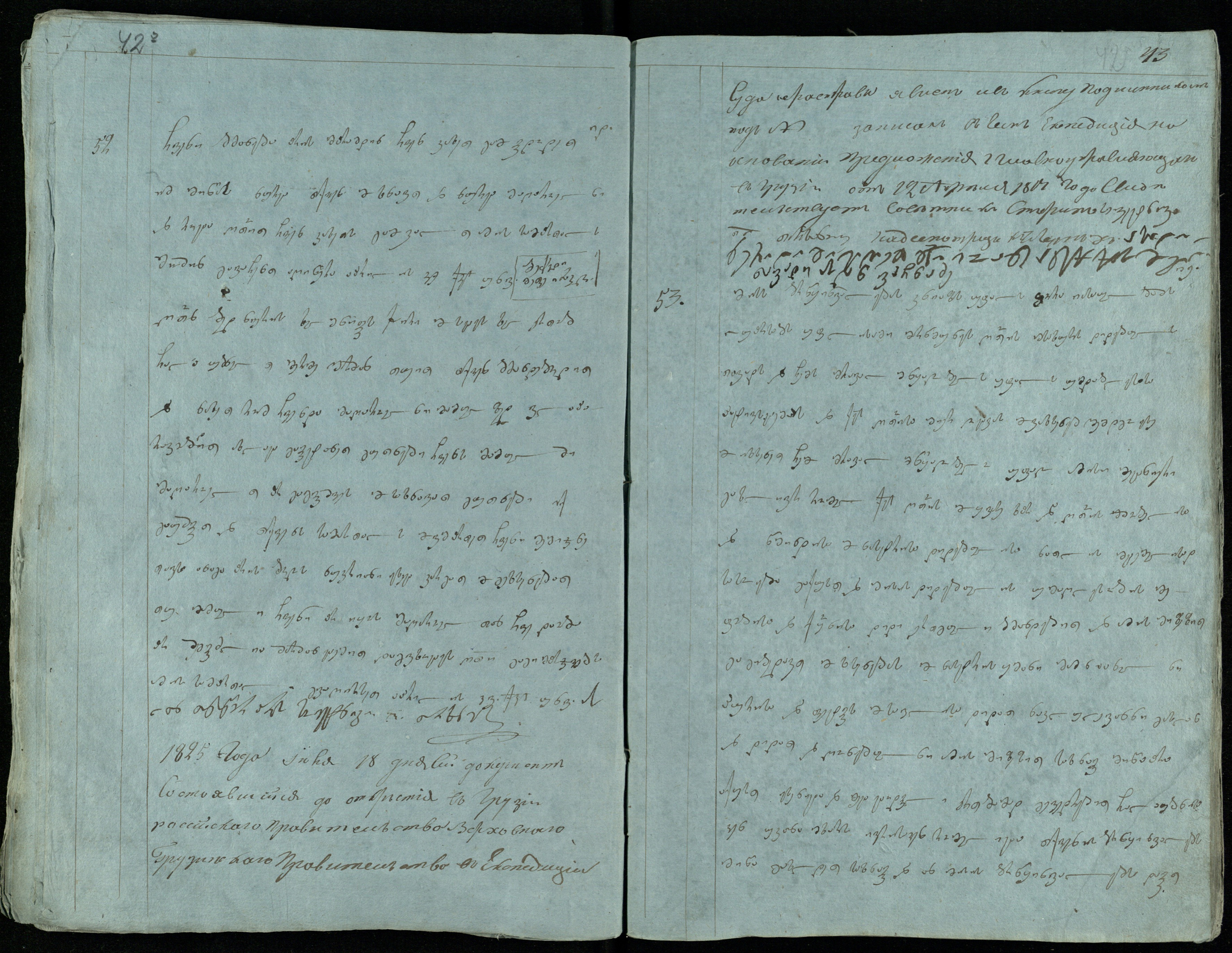 ქაღალდი ცისფერი, დაწერილი შავი მელნით
