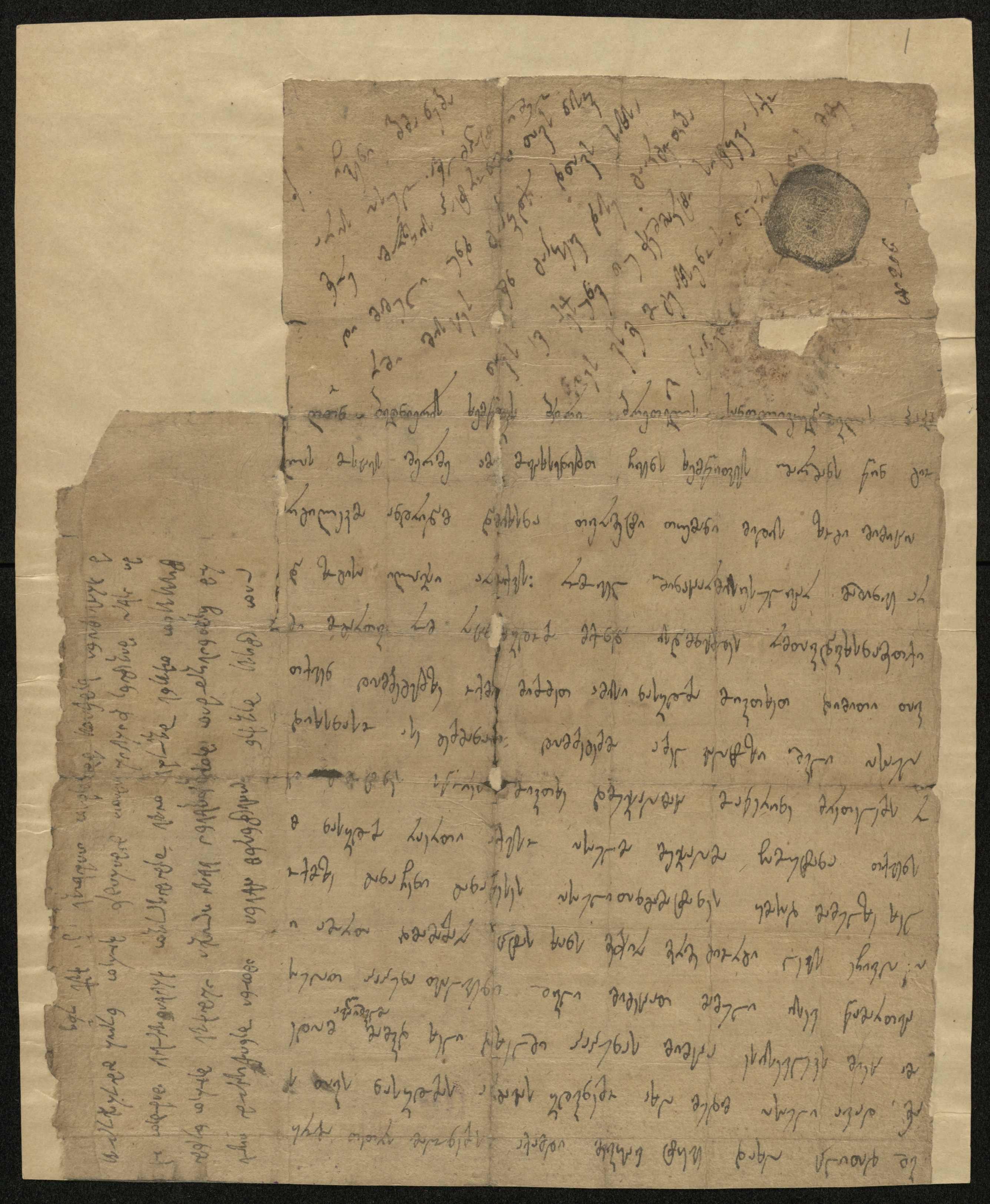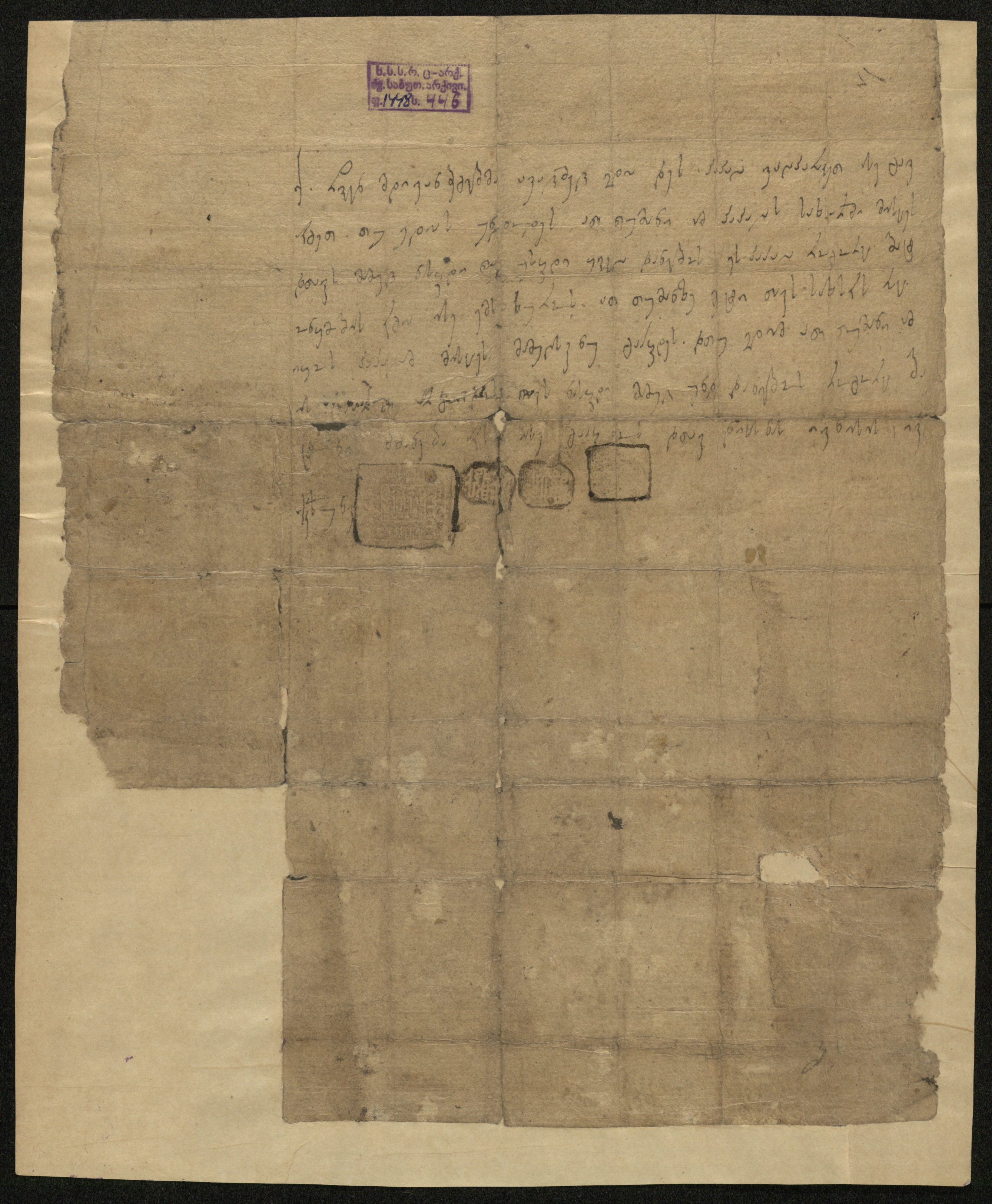 ქაღალდი ყავისფერი, დაწერილი შავი მელნით