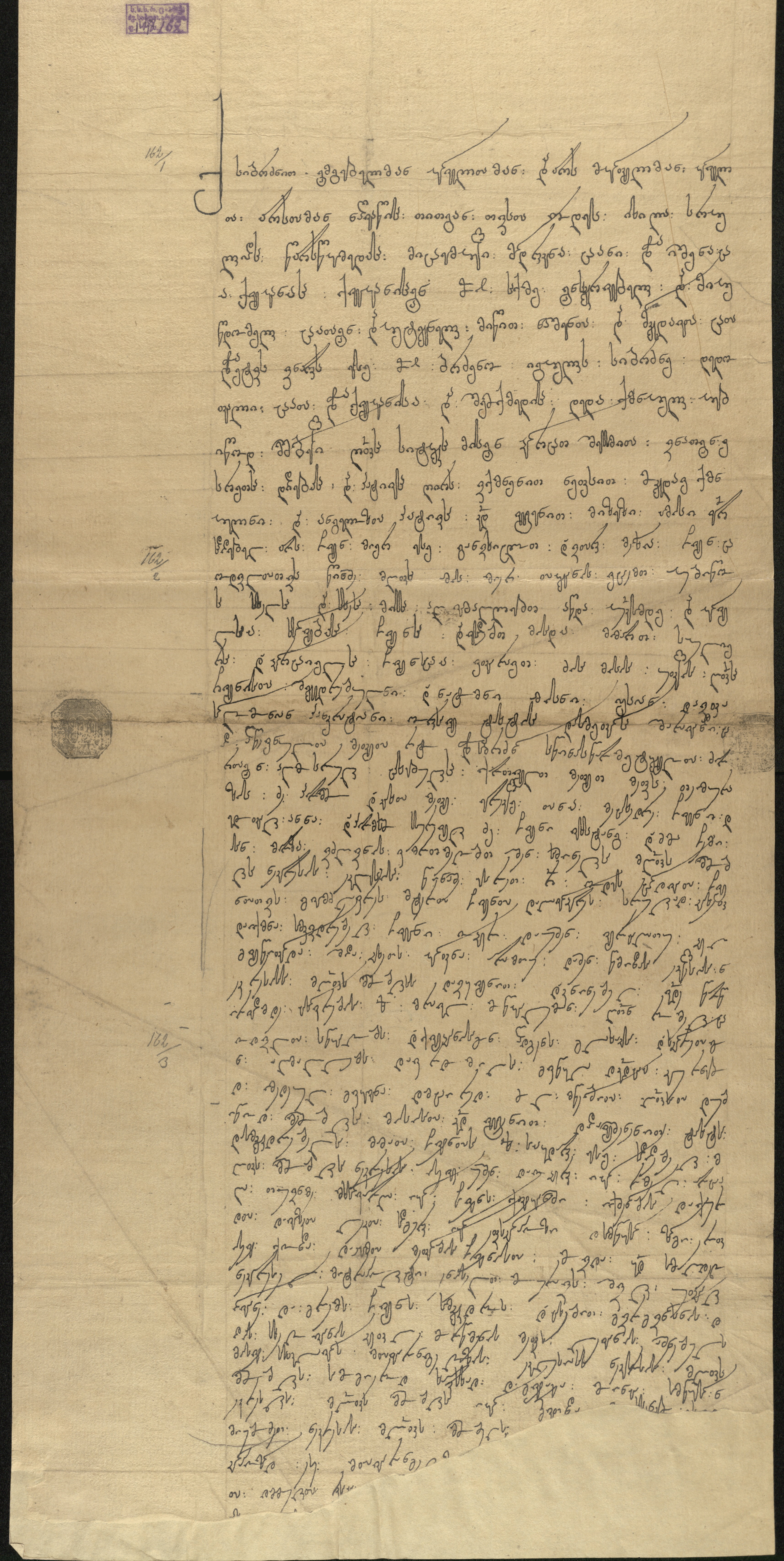 ქაღალდი მოყვითალო, დაწერილი შავი მელნით.