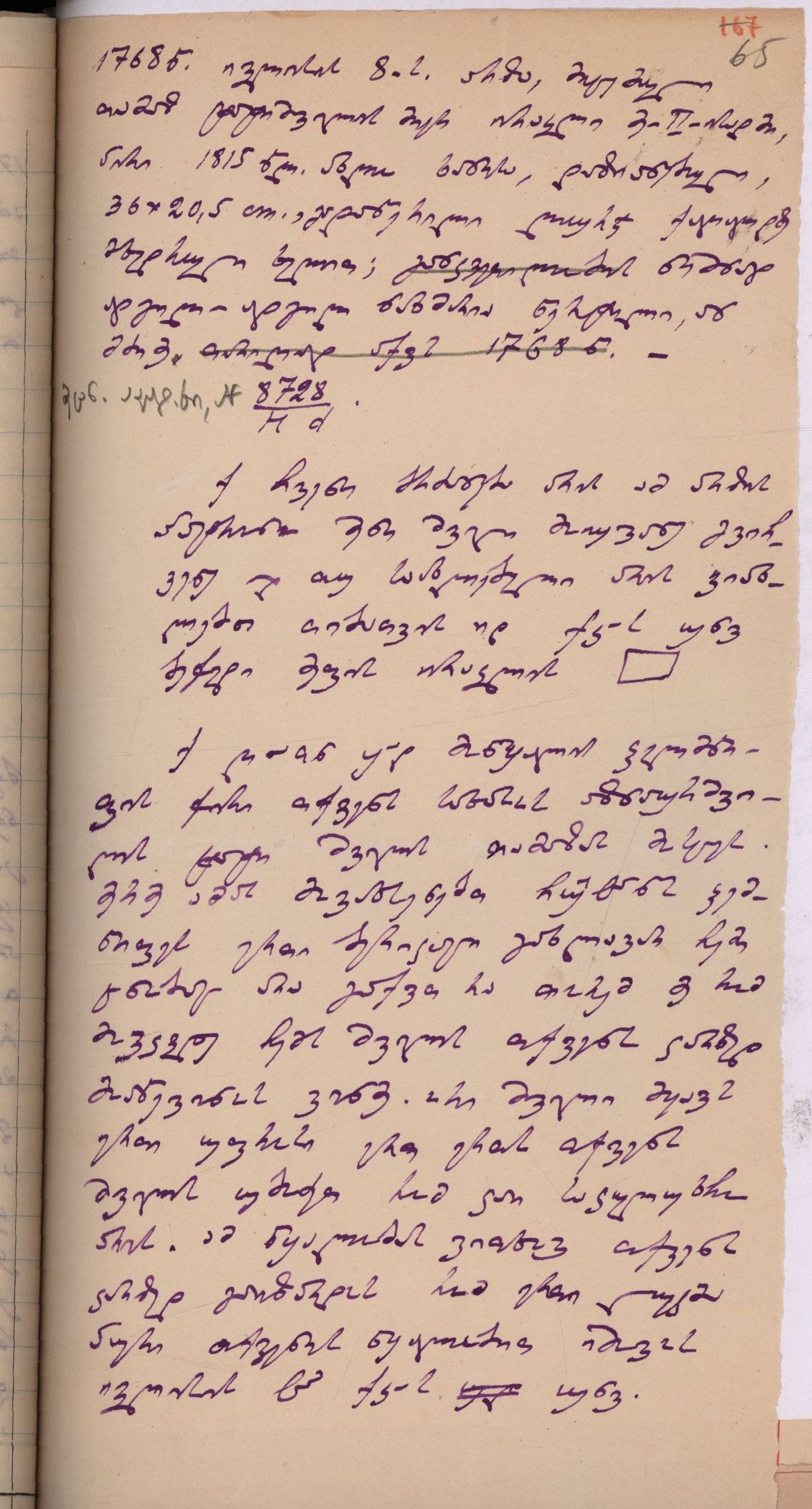 2. პირის აღწერა გიორგი ბოჭორიძის მიერ: ,,პირი 1815 წლ. ახლო ხანის. დაზიანებული, გადაწერილი ლურჯ ქაღალდზე მხედრული ხელით. განკვეთილობის ნიშნად ადგილ-ადგილ ნახმარია წერტილი, ან მძიმე", პირი, ხეც, Hd8728.