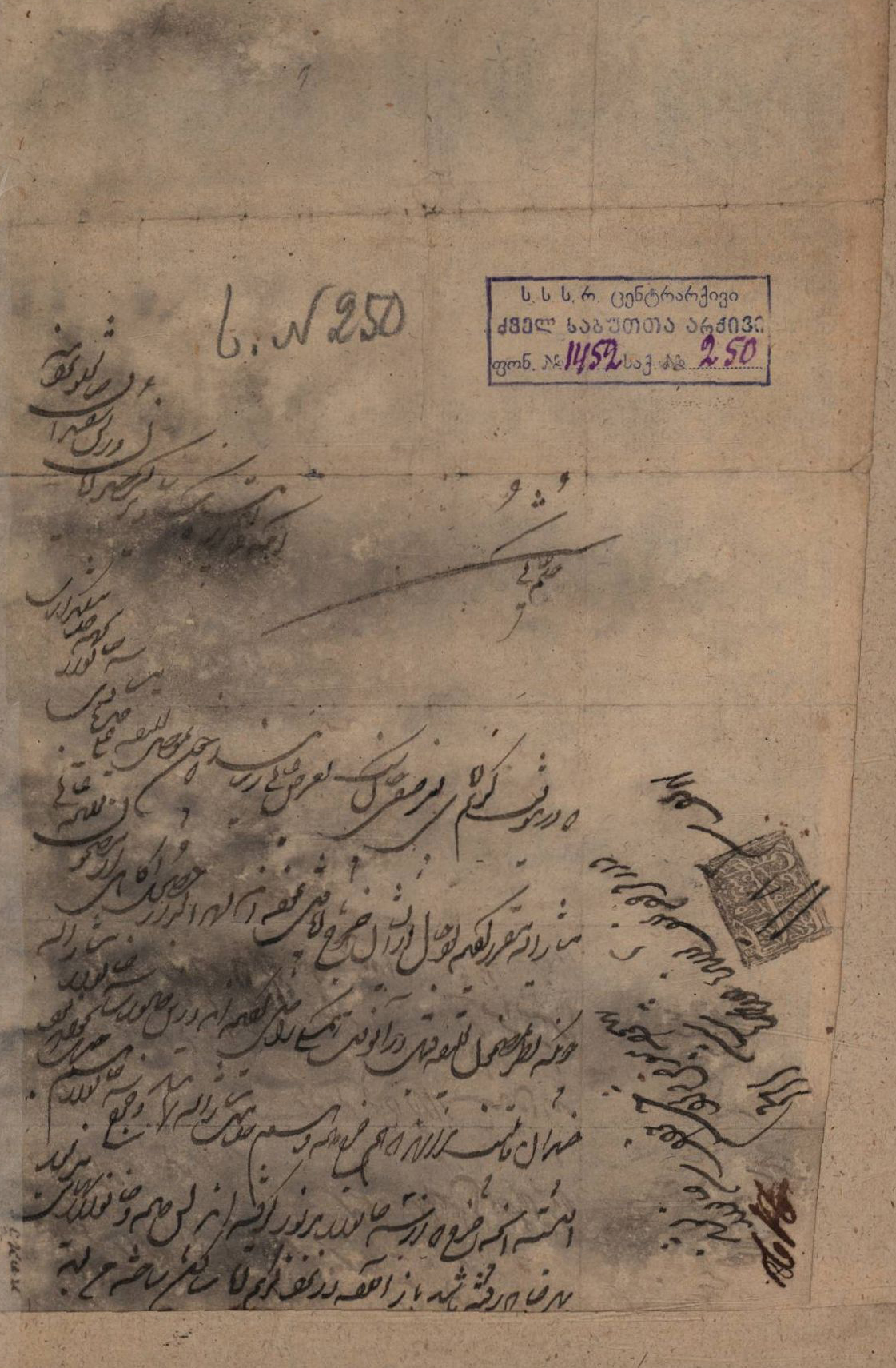 1. ფ.1452/250, სპარსული ძველი საბუთების კოლექცია.