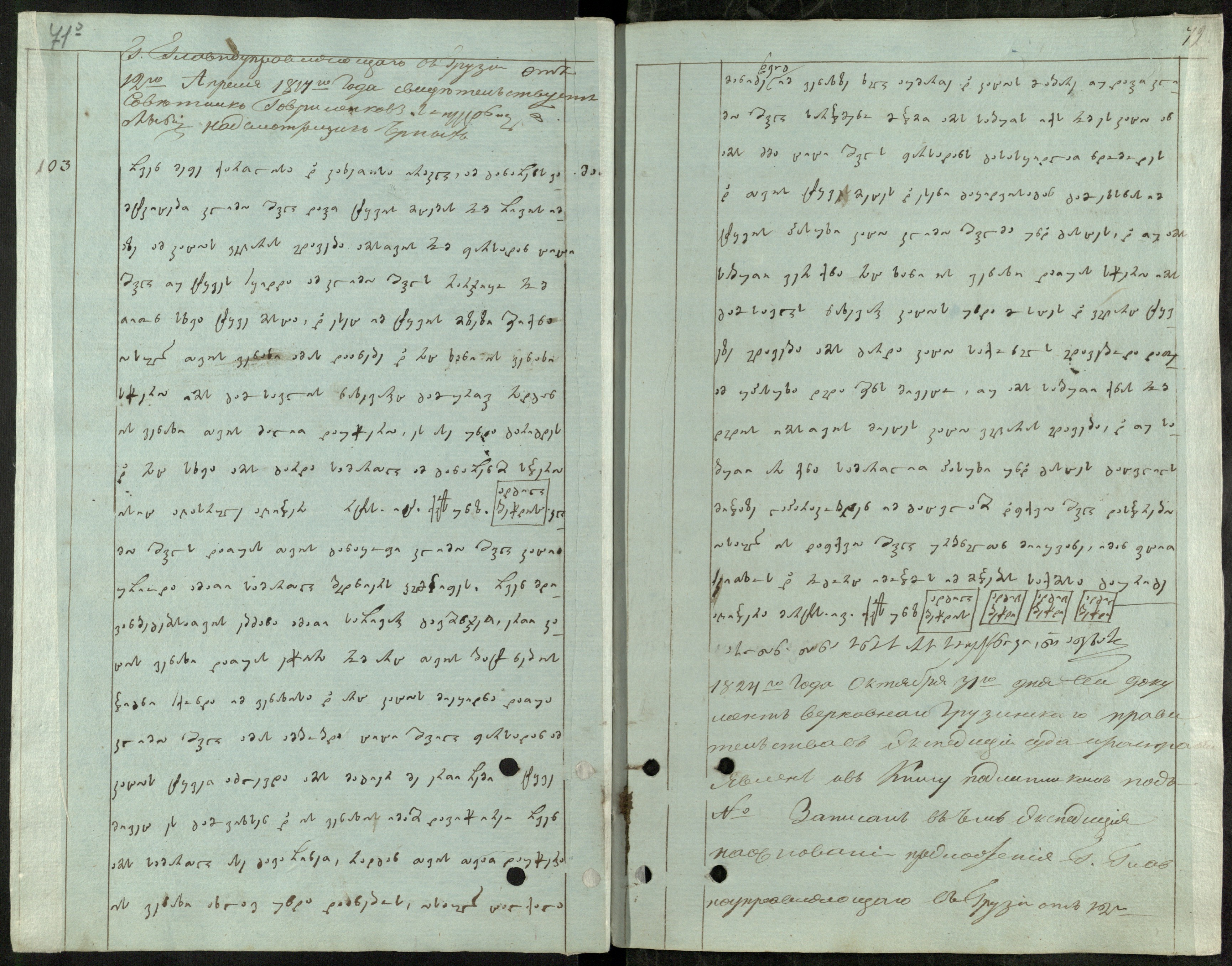 ქაღალდი ცისფერი, დაწერილი შავი მელნით