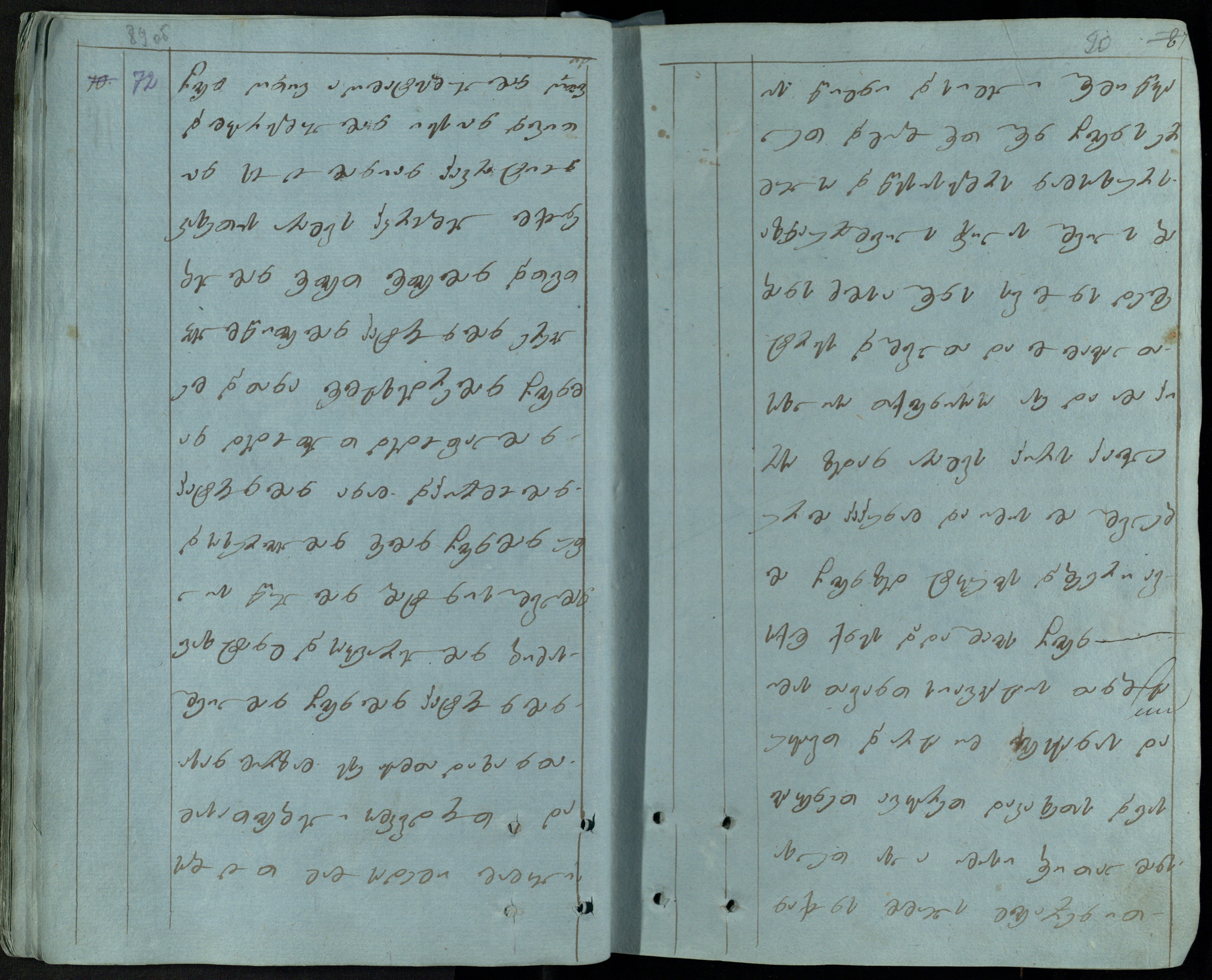 ქაღალდი ცისფერი, დაწერილი შავი მელნით