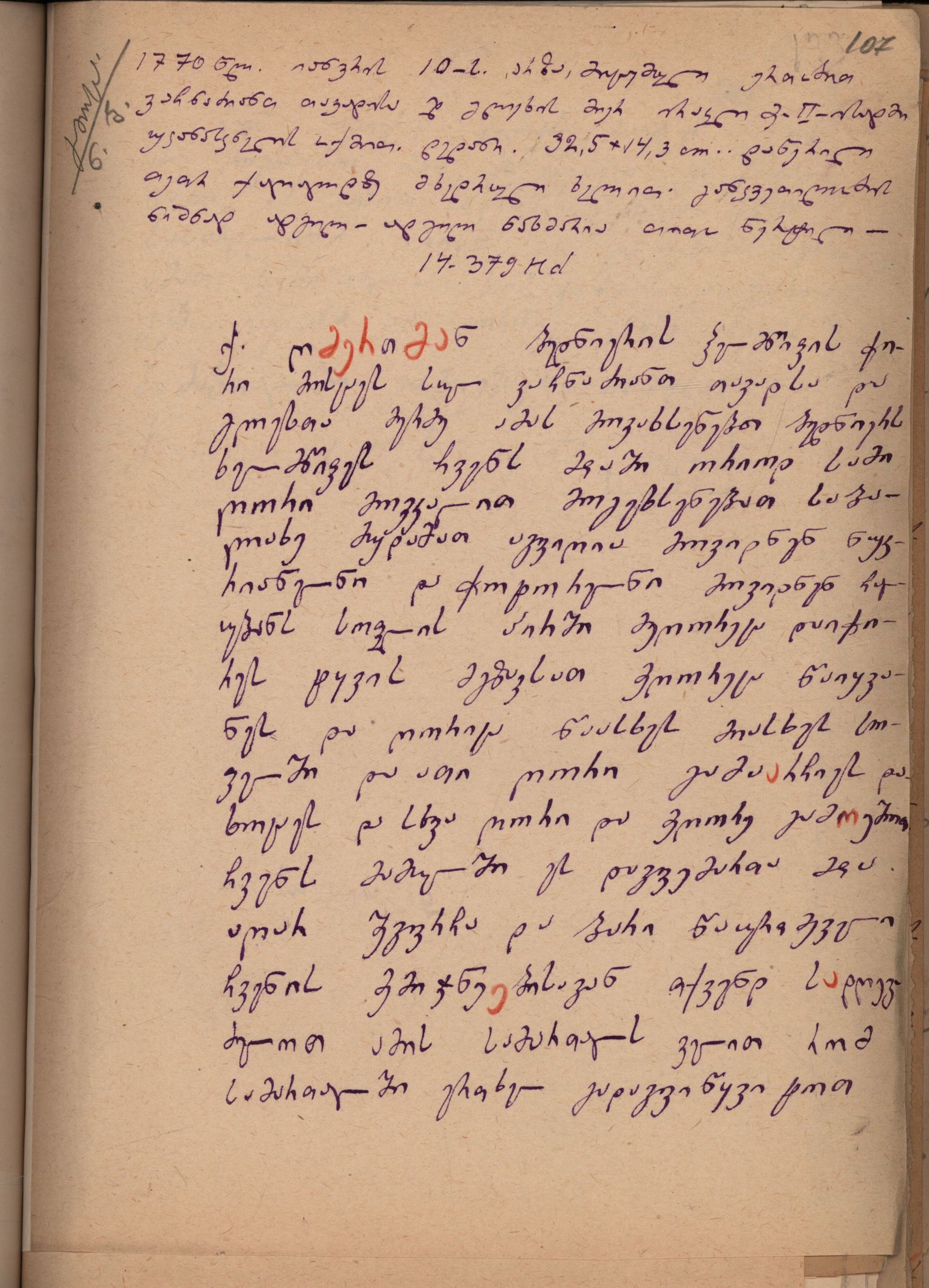2. დედნის აღწერა გიორგი ბოჭორიძის მიერ: ,,დედანი, 32,5X14,3, cm.. დაწერილი თეთრ ქაღალდზე მხედრული ხელით. განკვეთიკობის ნიშნად ადგილ-ადგილ ნახმარიათითო წერტილი", დედანი; ხეც, Hd 14379.