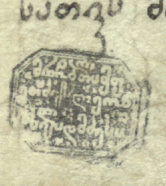 1. საშუალო ზომის ქანწილი ფოთლოვანი ორნამენტით, შესრულებული შავი მელნით.