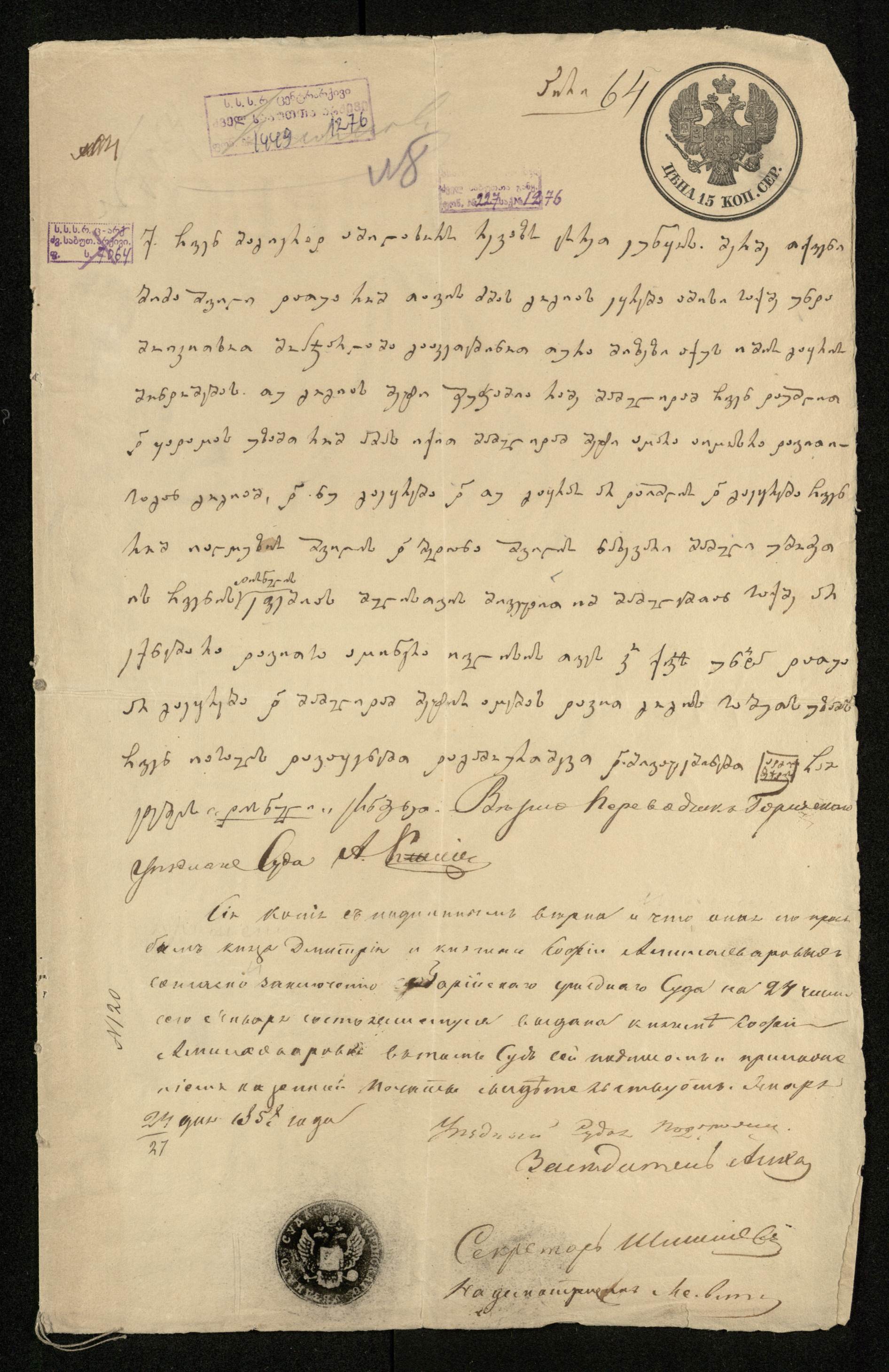 რეგისტრირებული რუსული ადმინისტრაციის მიერ 1858 წ. 24 მარტს, სოვეტნიკი გაბრიელ რატიევი.