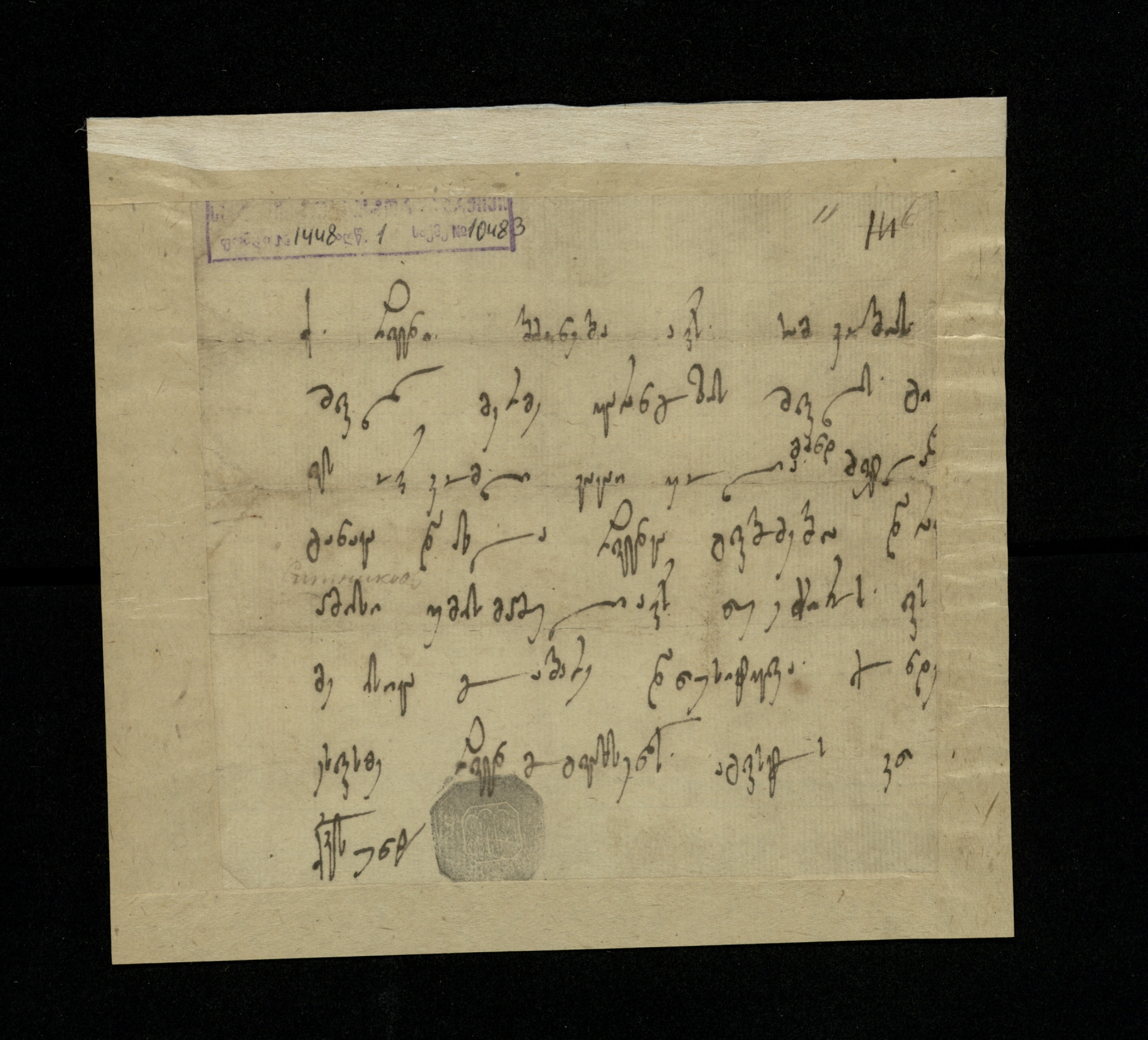 მოღწეულია სრული სახით, რესტავრირებული, V-ზე დაკრულია მცირე ზომის ცისფერი ქაღალდი რუსული რეგისტრაციით