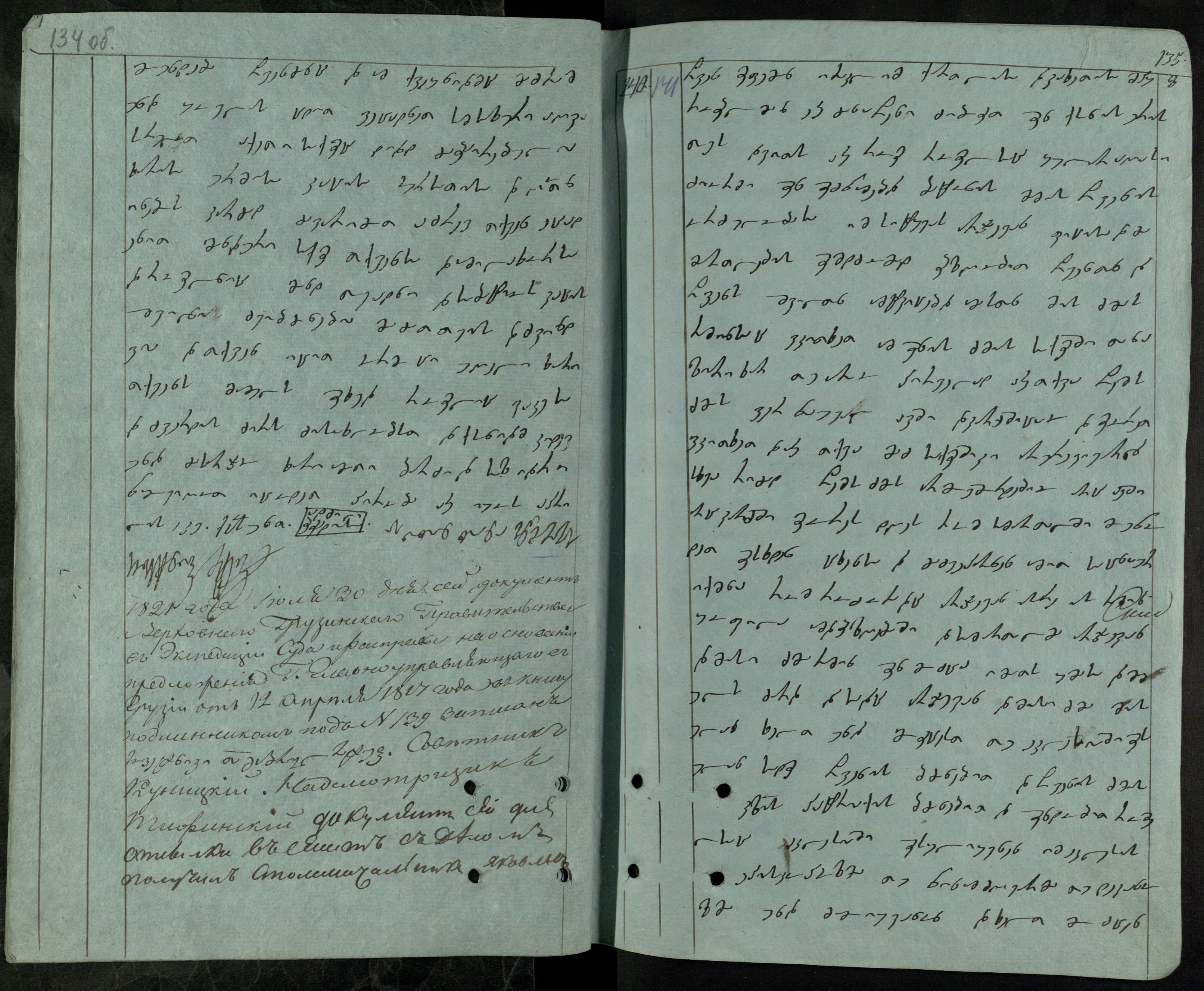 ქაღალდი ცისფერი, დაწერილი შავი მელნით.