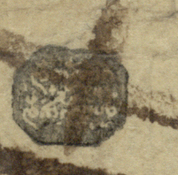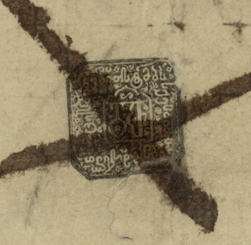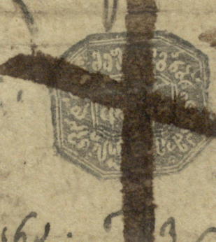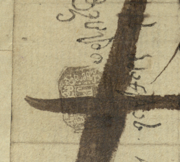 2. ტექსტს და ბეჭდებს გადასმული აქვთ ჯვარედინად სქელი ხაზი ყავისფერი მელნით.